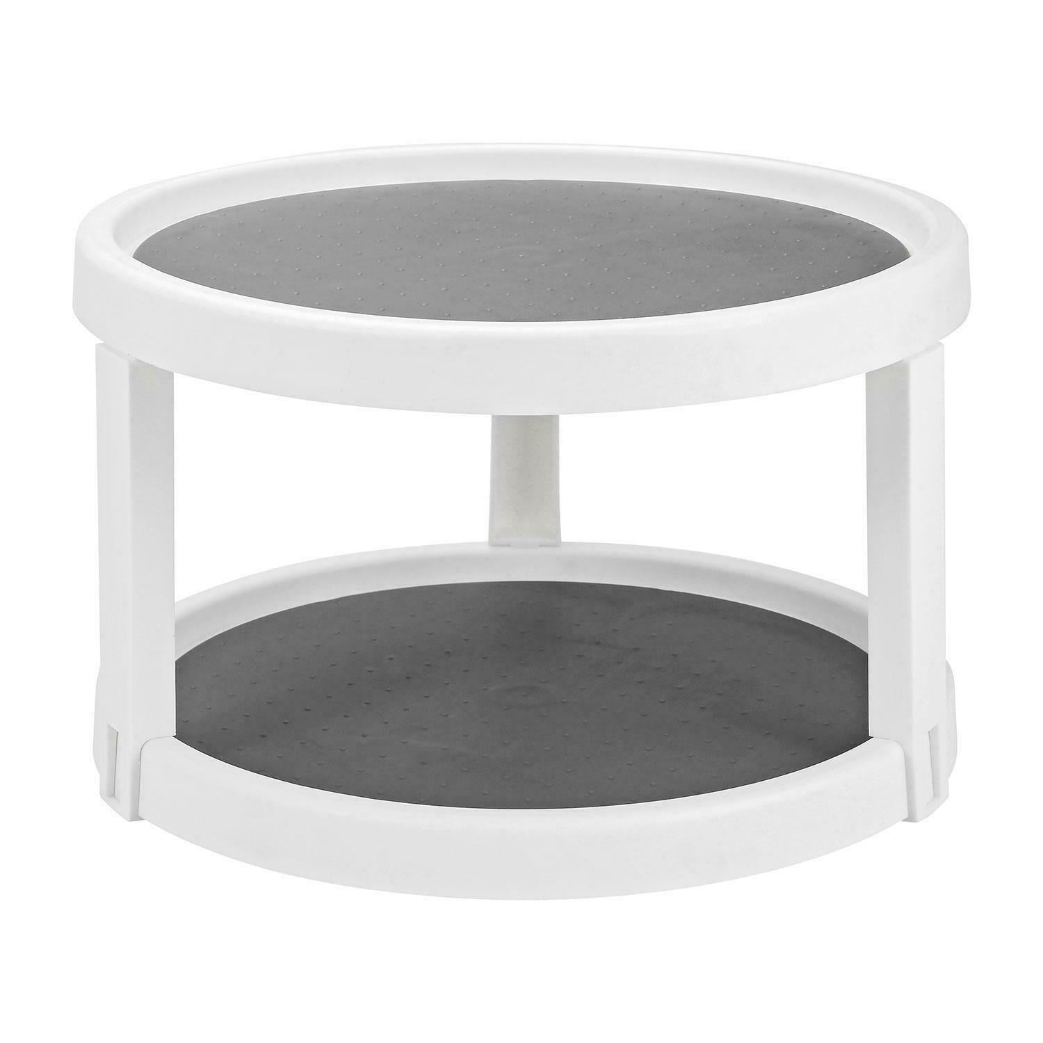 2 Tier Plastic Anti Slip Rotating Kitchen Food Spice Jars Storage Shelf Holder