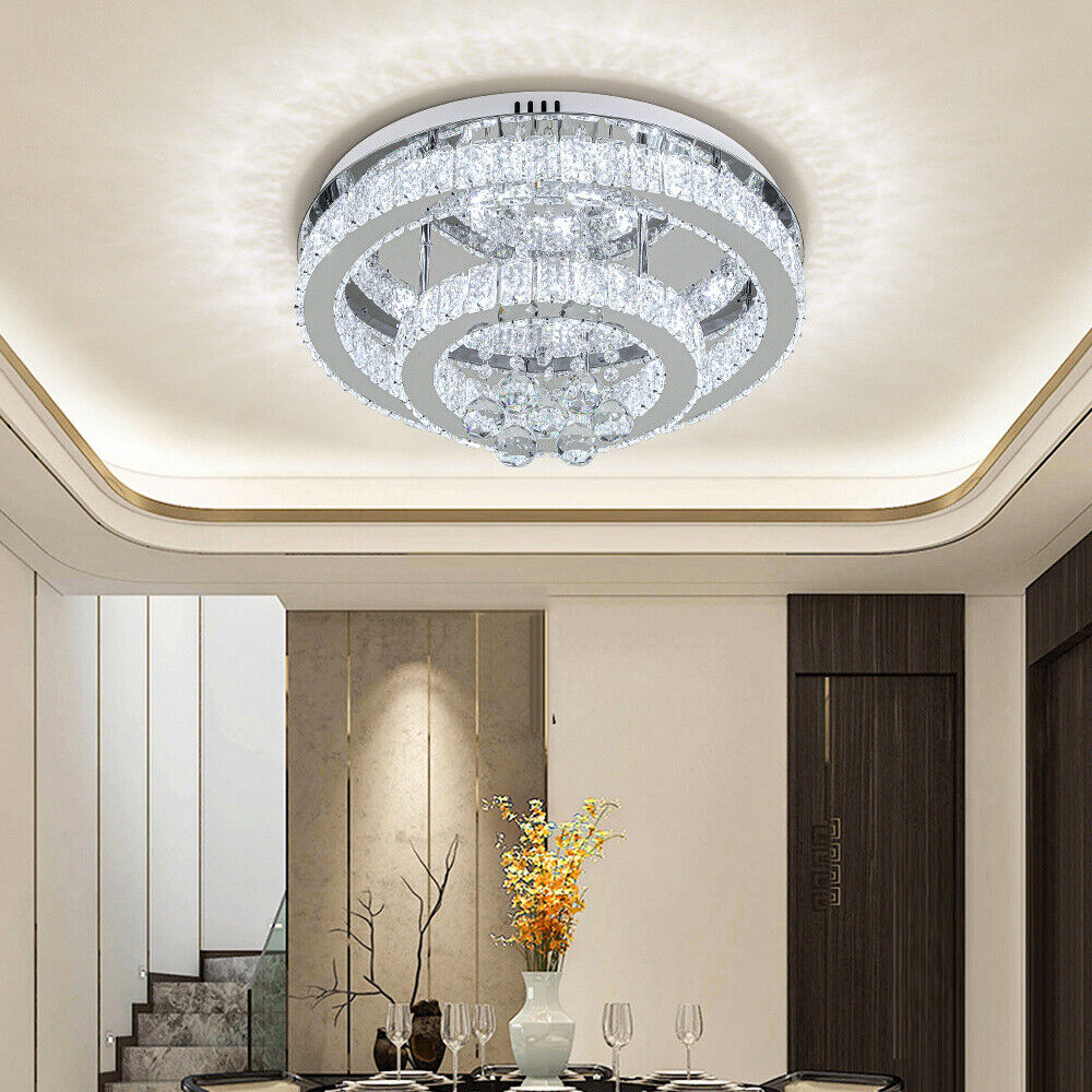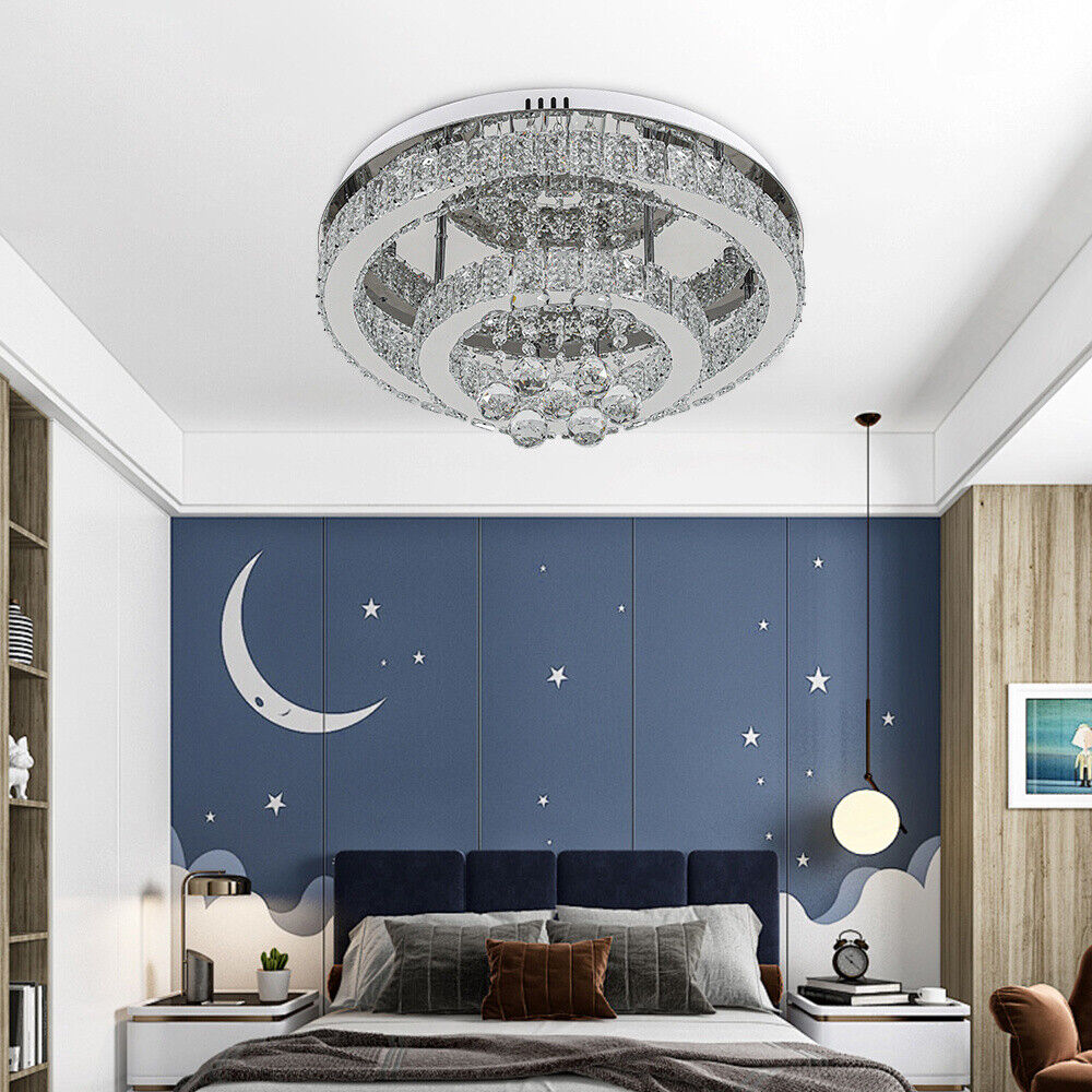 2 Tier Round LED Crystal Ceiling Light Luxury Chandelier for Living Room Bedroom