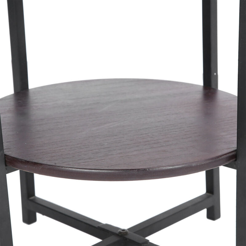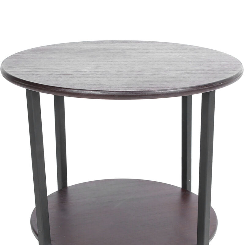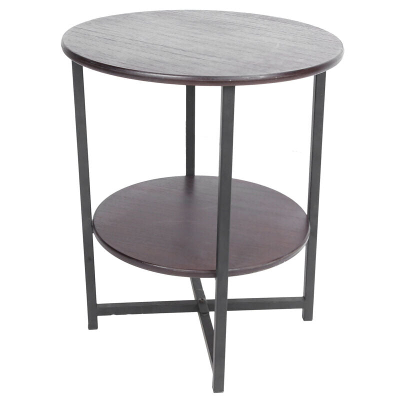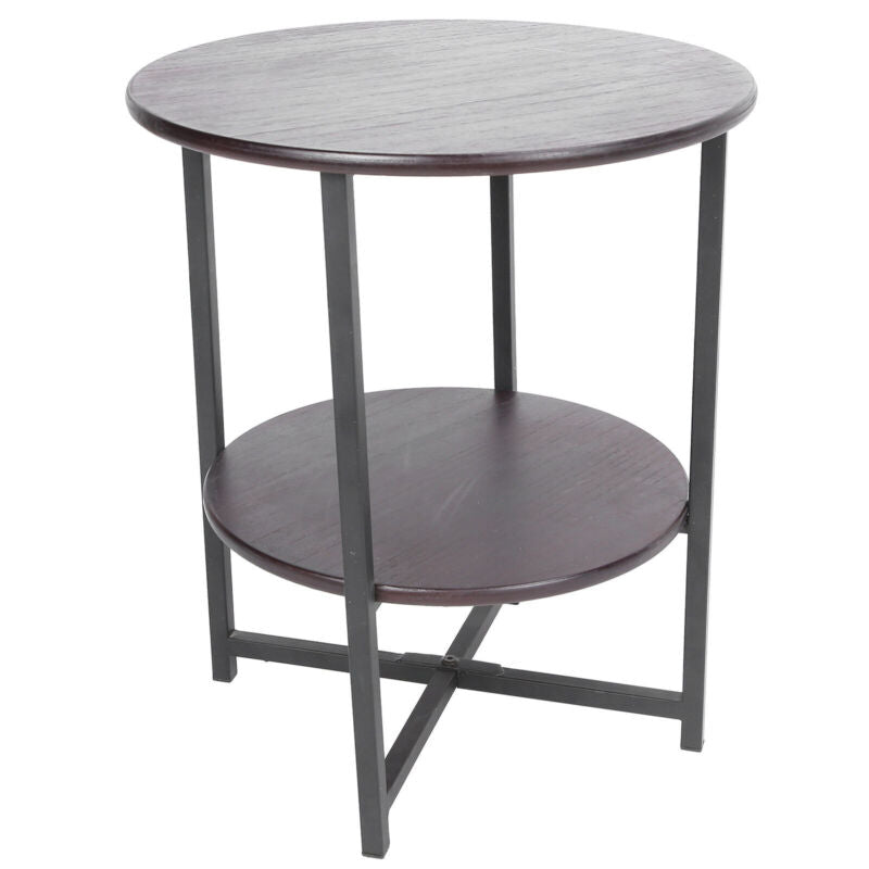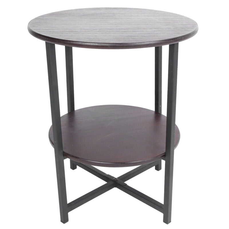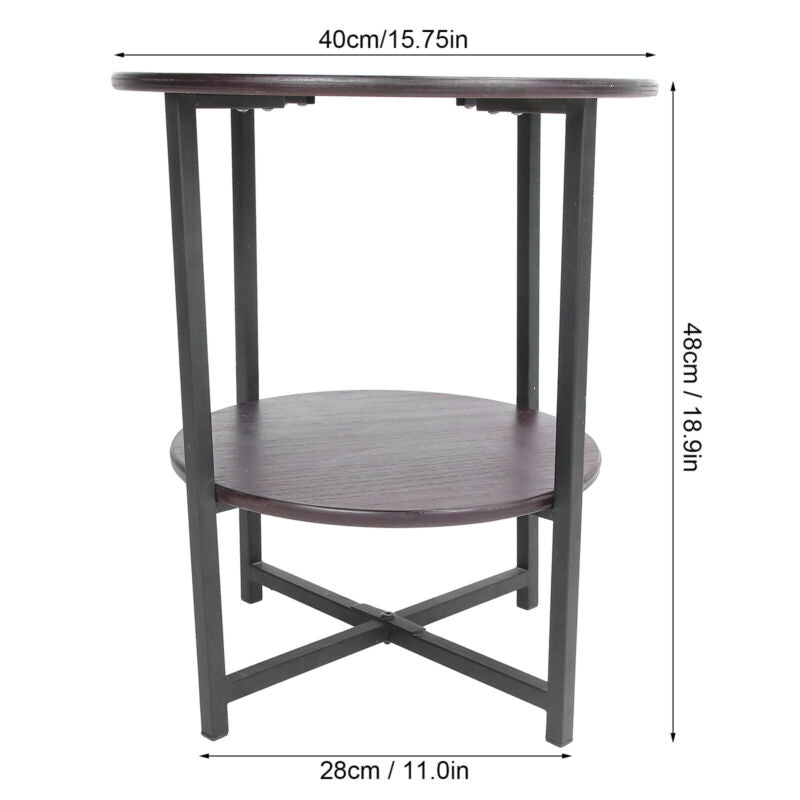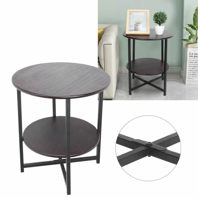 2-Tier Round Side End Table Metal Wood Coffee Tea Sofa Desk For Home Living Room