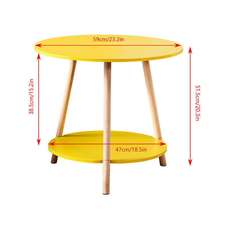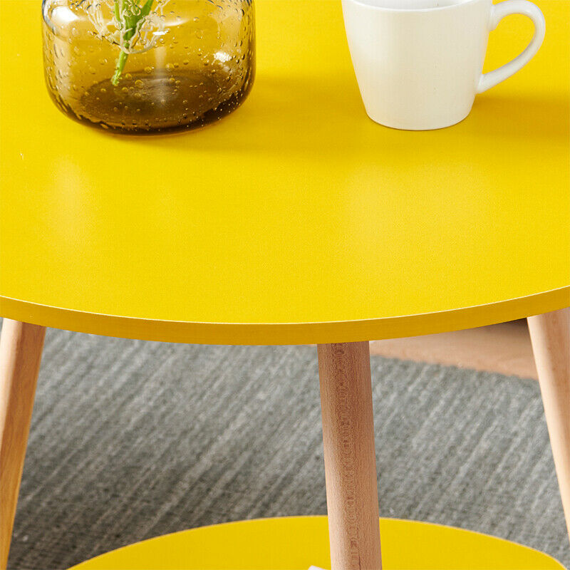 2 Tier Round Sofa Side End Corner Table Wooden Legs LivingRoom Kitchen Yellow