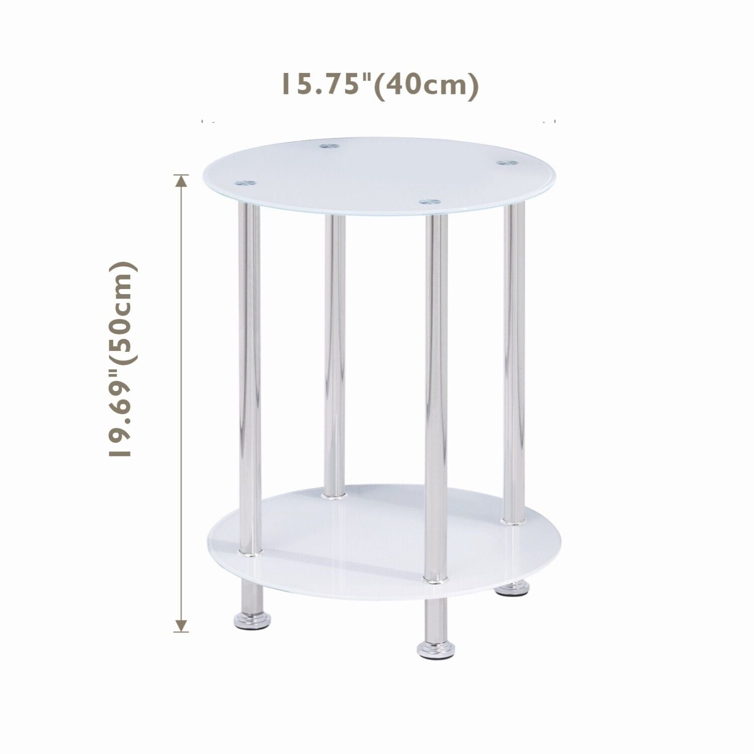 2 Tier Round White Tempered Glass Side End Table Stainless Steel Bedside Table