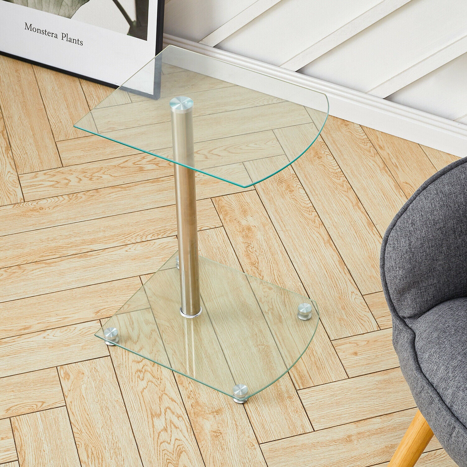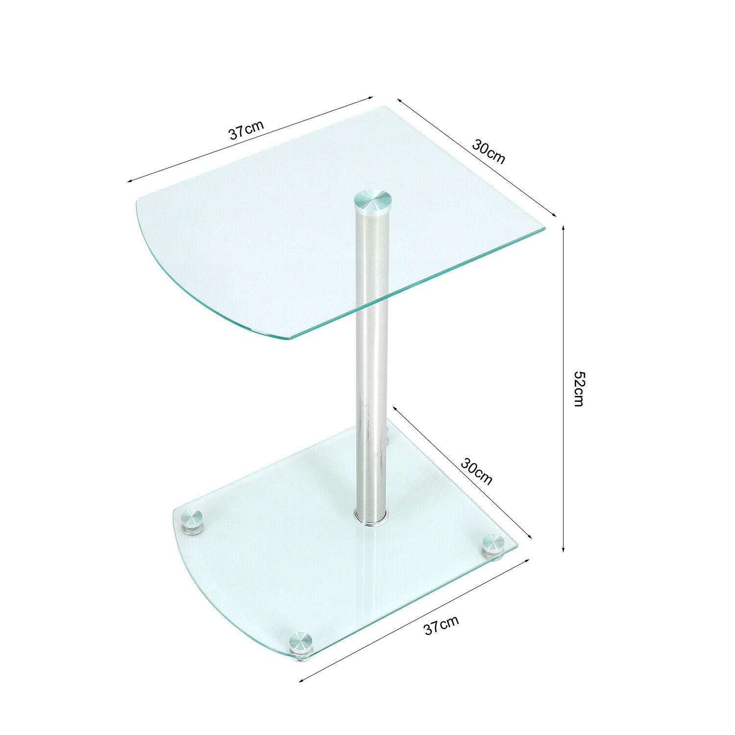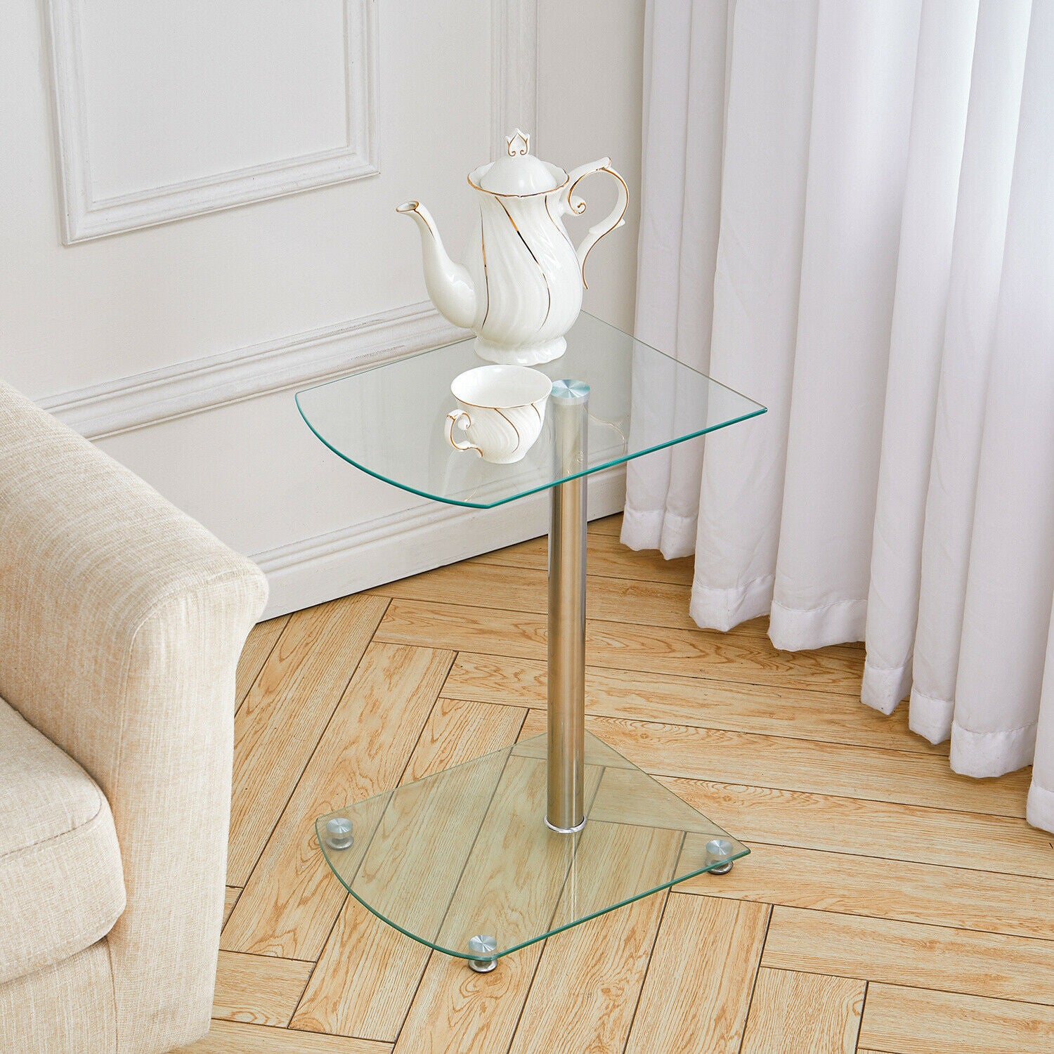 2 Tier Side End Table Tempered Glass Corner Coffee Table Chrome Leg Lamp Stand