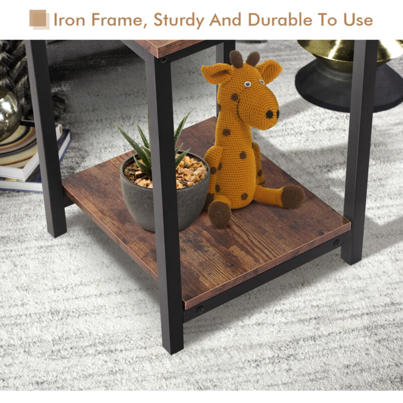 2 Tier Side Sofa Table Small Coffee Tea Table Industrial Wooden Metal End Table