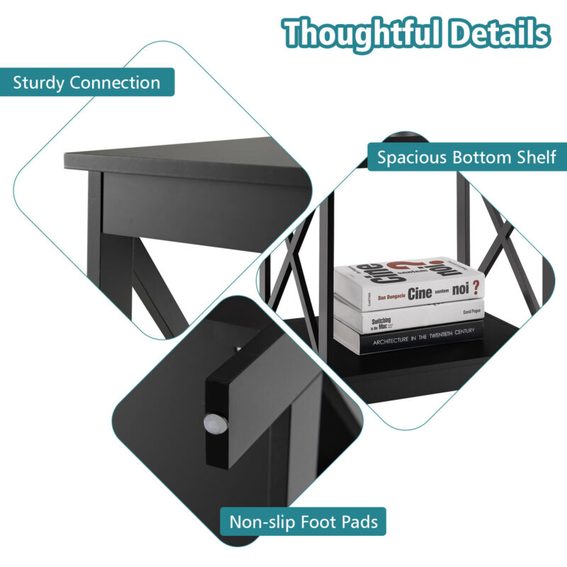 2-tier Side Table Modern End Table Coffee Table X-shape Nightstand Display Shelf