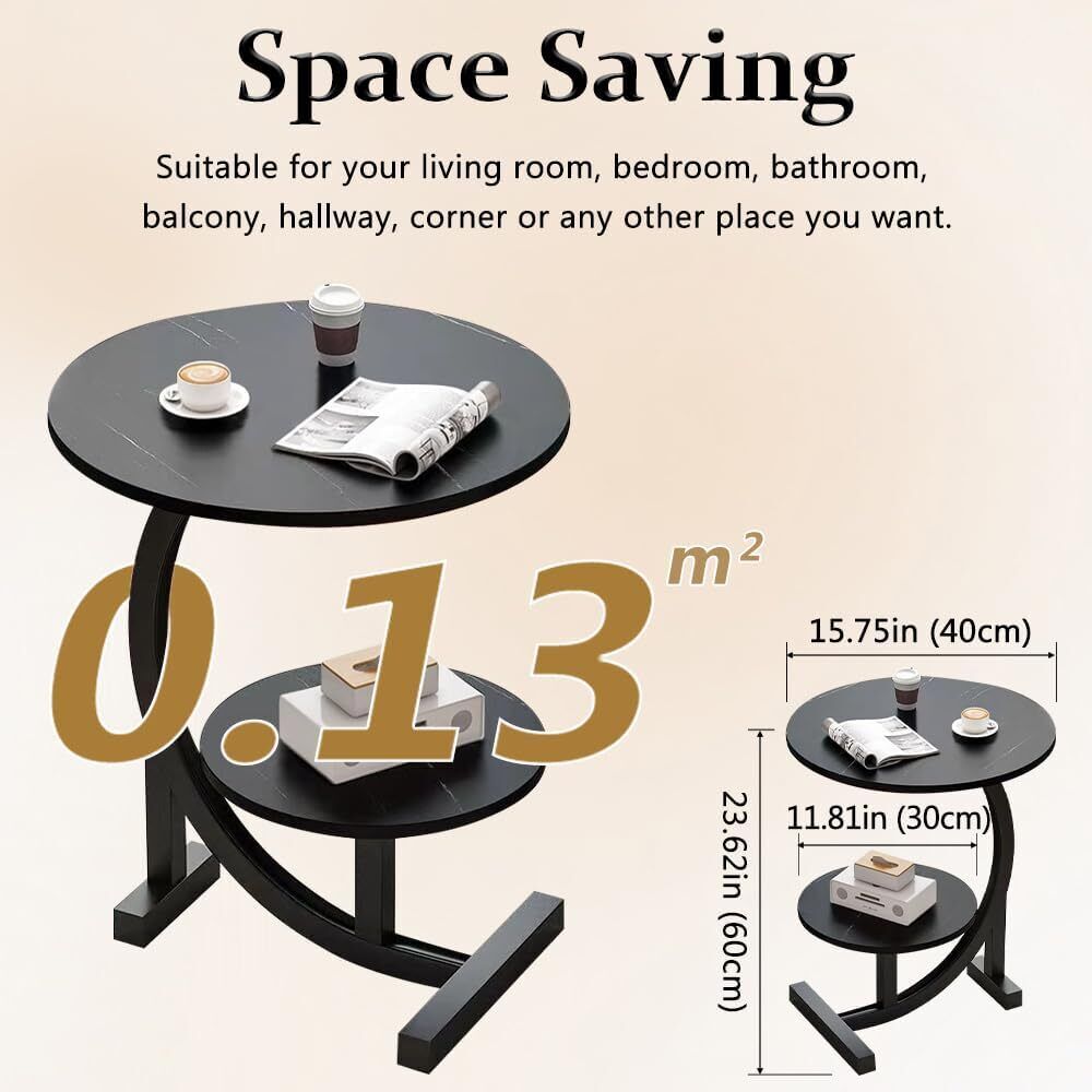 2 Tier Small Sofa Side Table Coffee End Round Table Shelf Living Room Bedroom