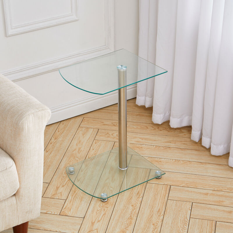 2 Tier Sofa End Coffee Tables With Clear Glass Top Home Office Table Living Room