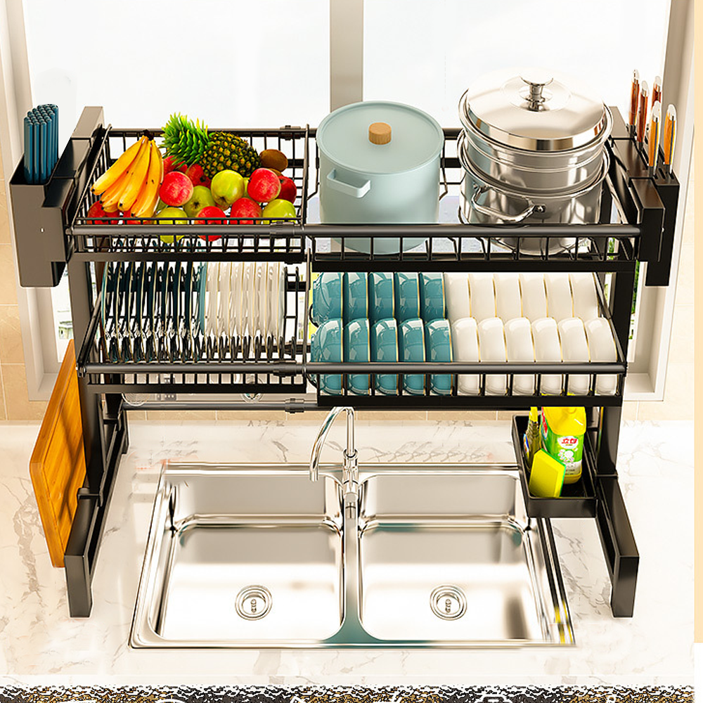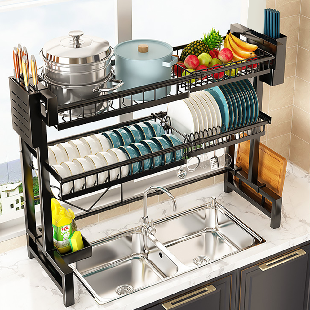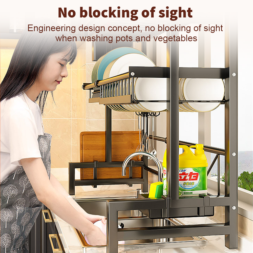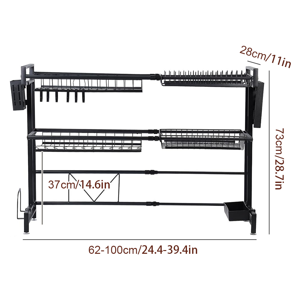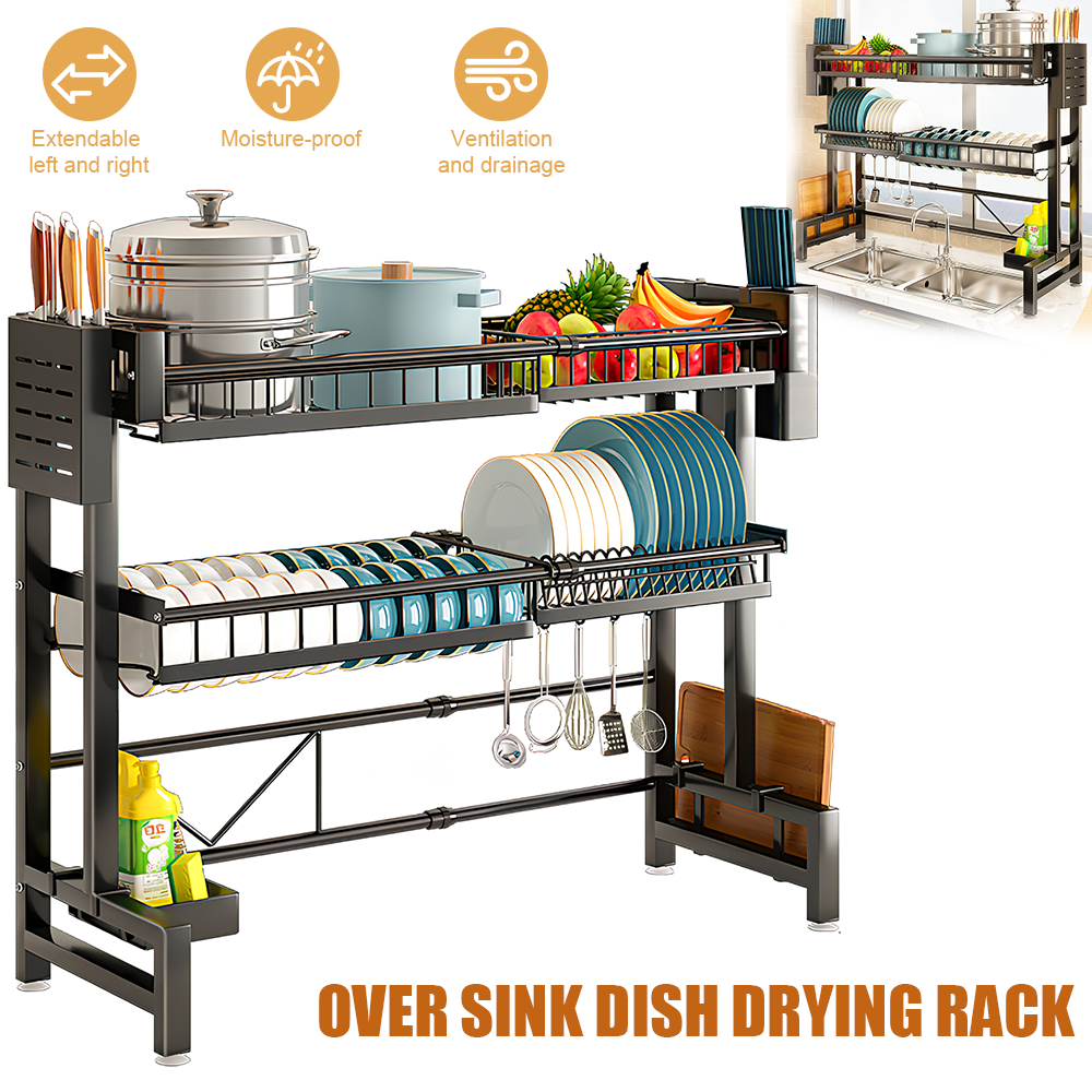 2 Tier Space Saving Over The Sink Dish Drying Rack Large Adjustable Dish Drainer