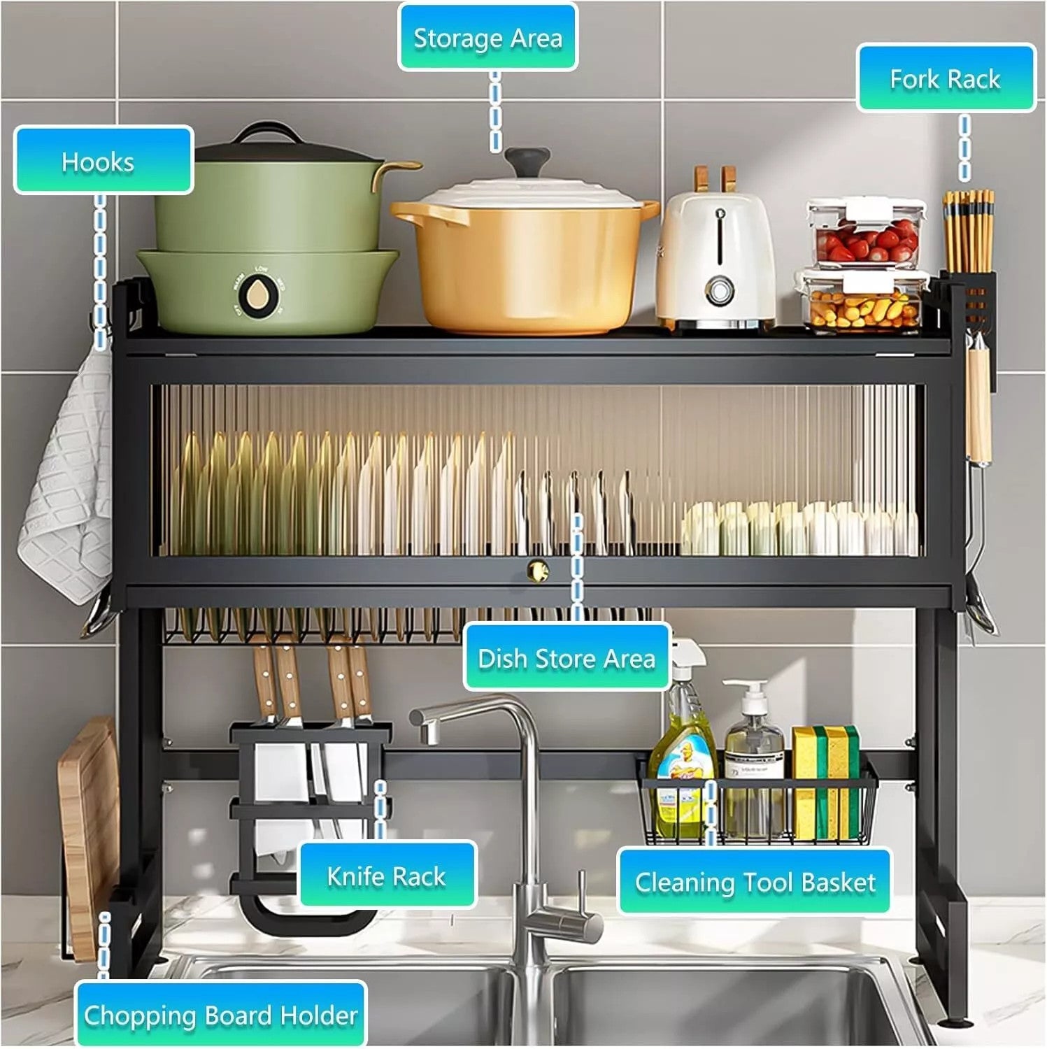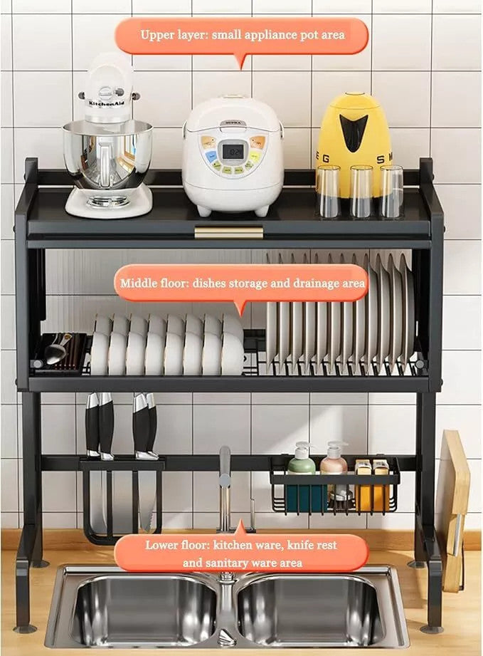 2 Tier Space Saving Over The Sink Dish Drying Rack Large Adjustable Dish Drainer