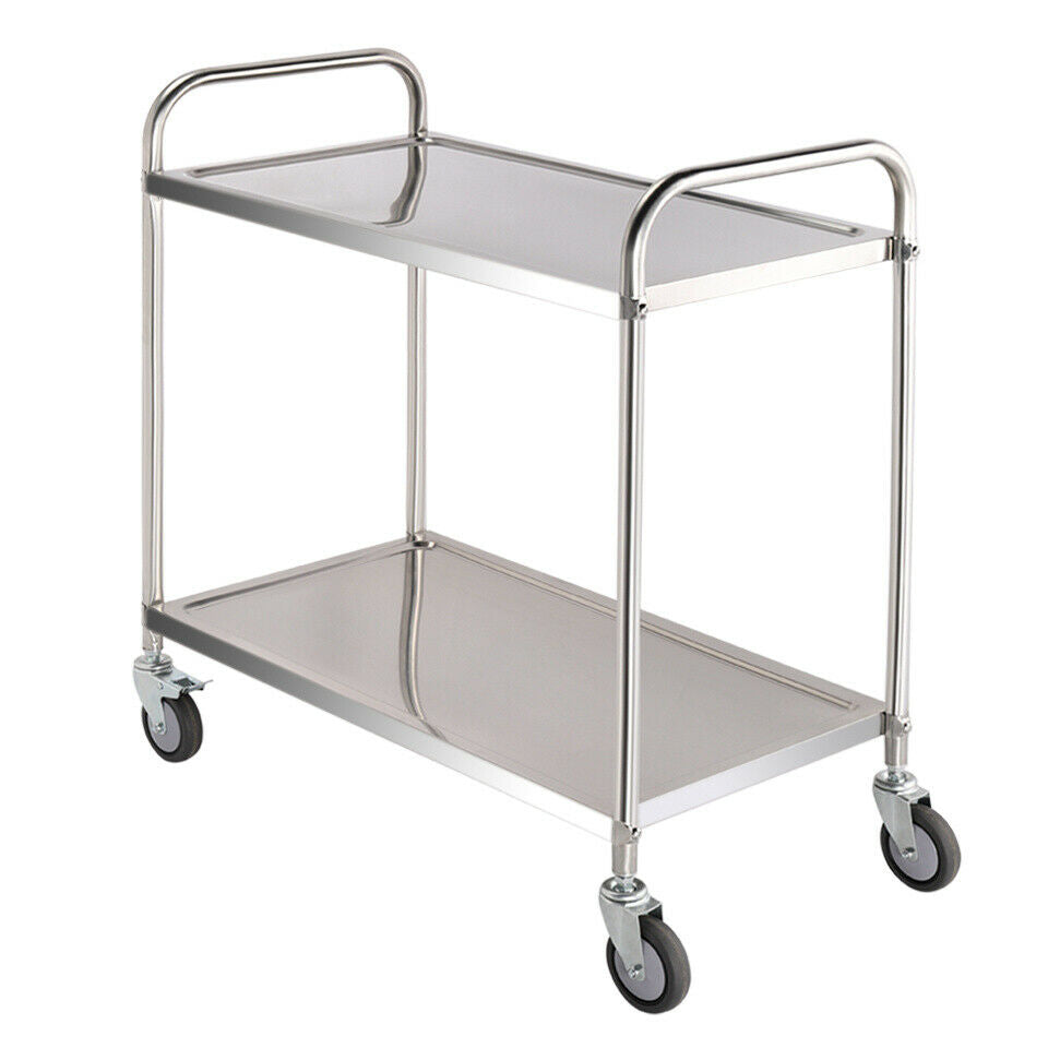 2 Tier Stainless Steel Kitchen Trolley Hotel Catering Serving Cart Rolling Rack
