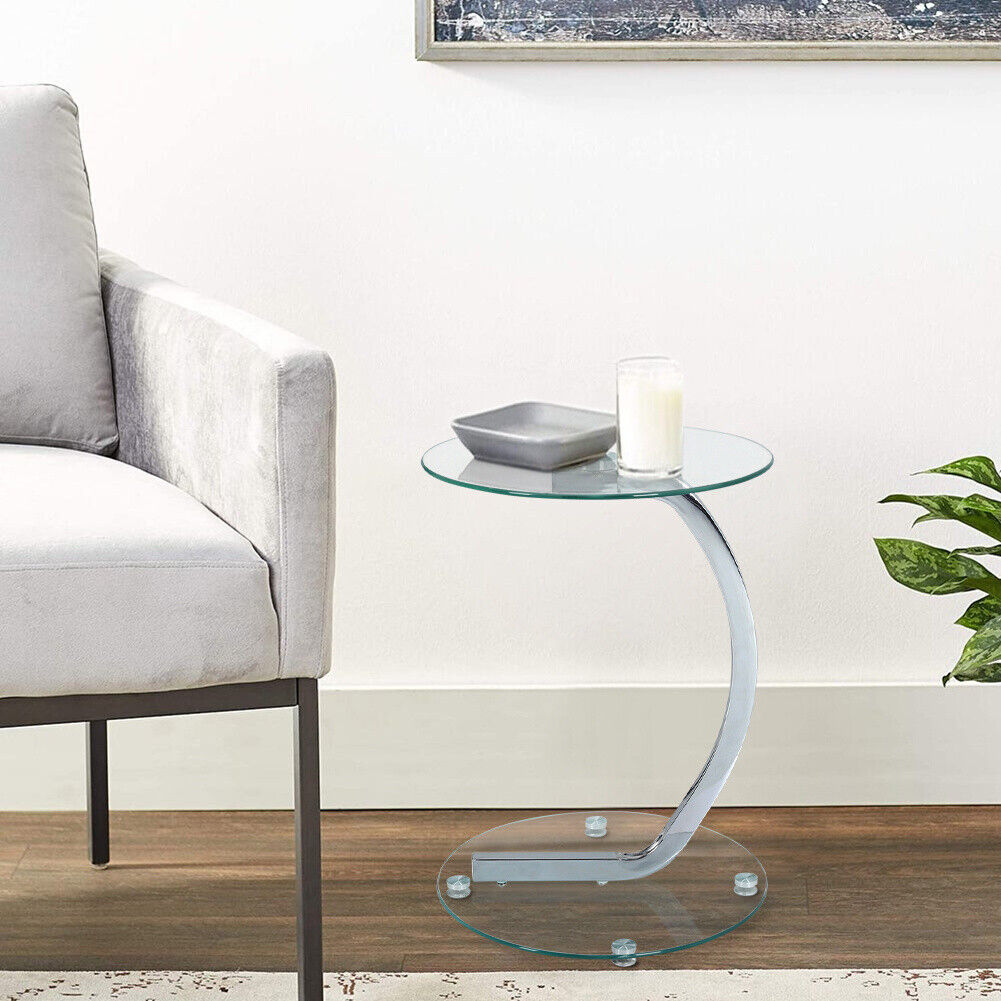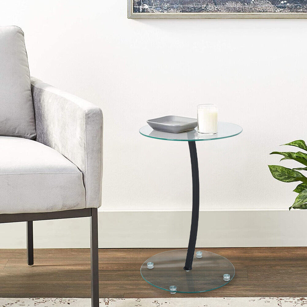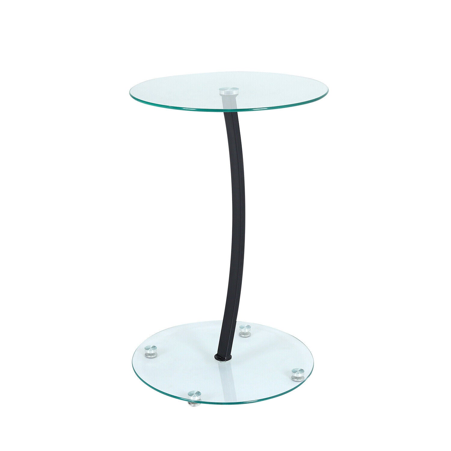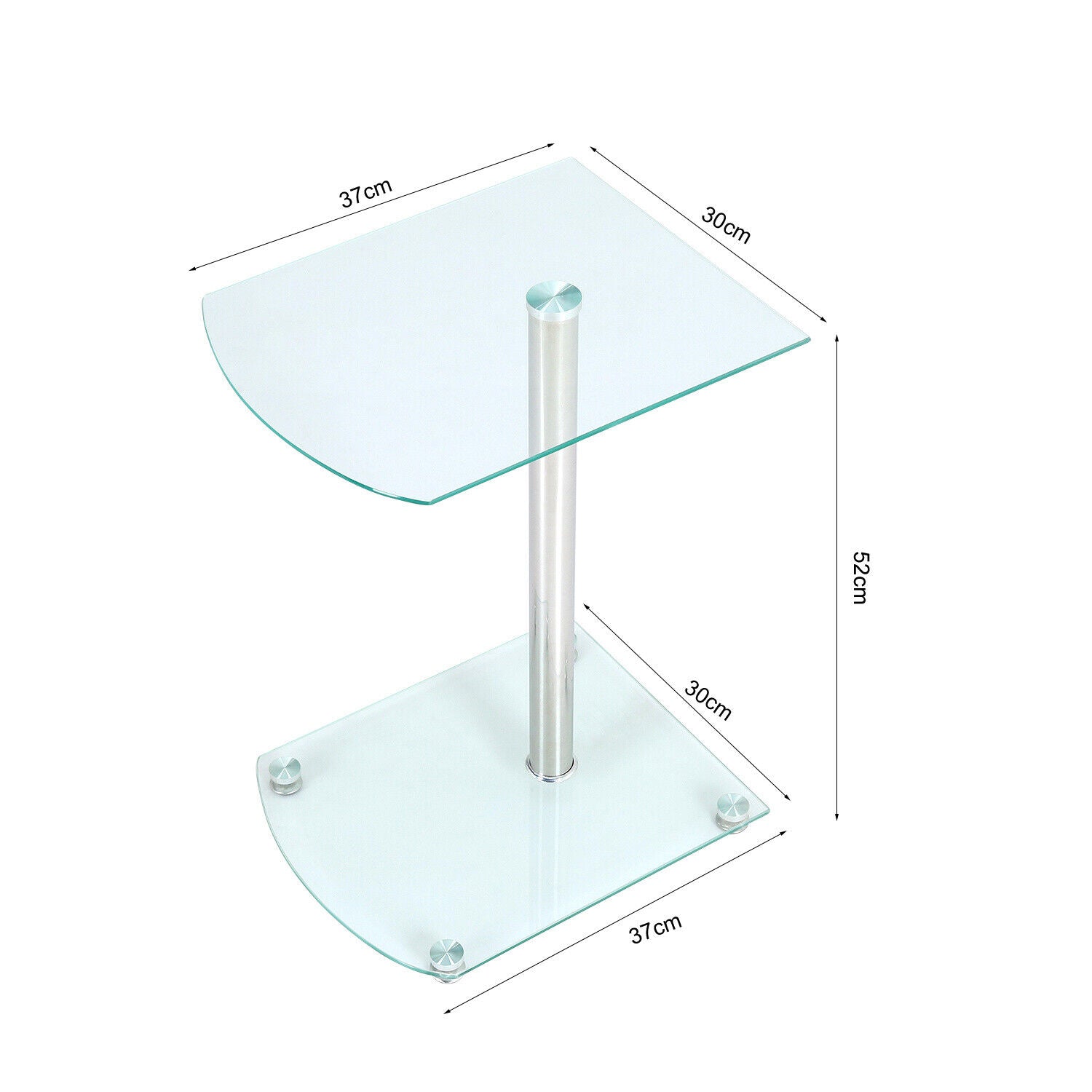 2-Tier Tempered Glass Sofa End Side Coffee Table Bedside Table Night Stand Lamp