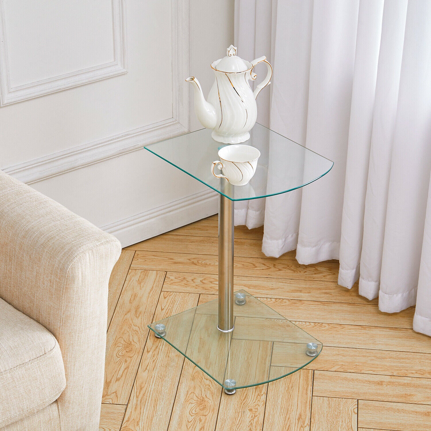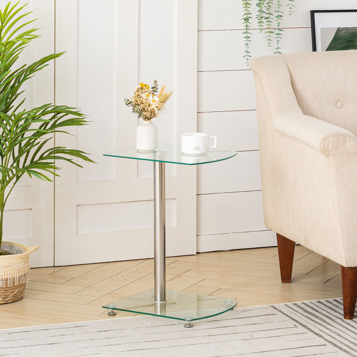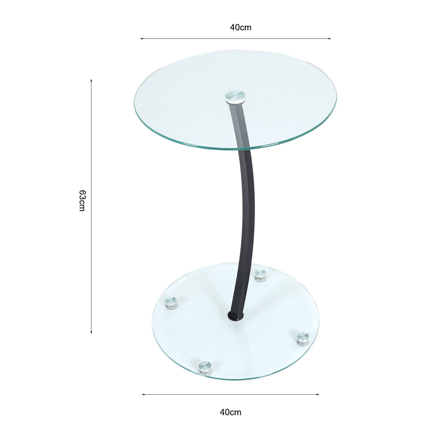 2-Tier Tempered Glass Sofa End Side Coffee Table Bedside Table Night Stand Lamp