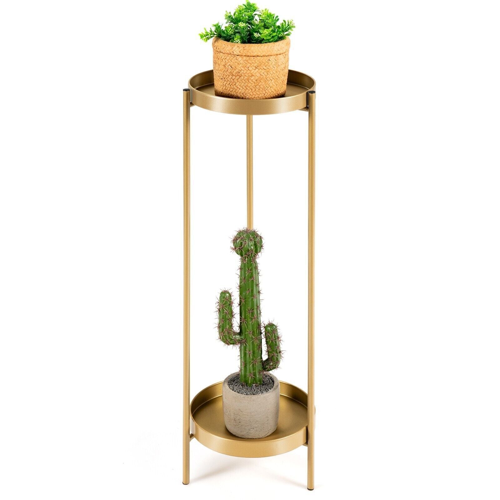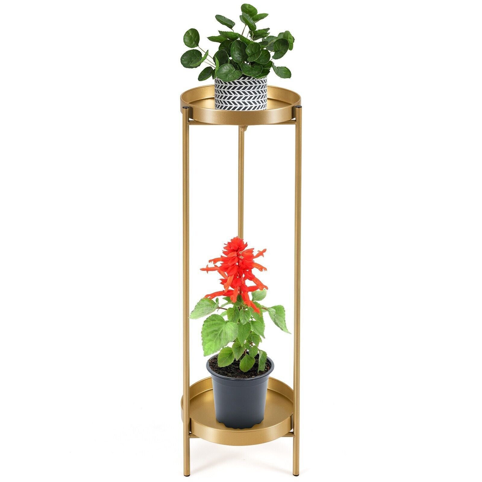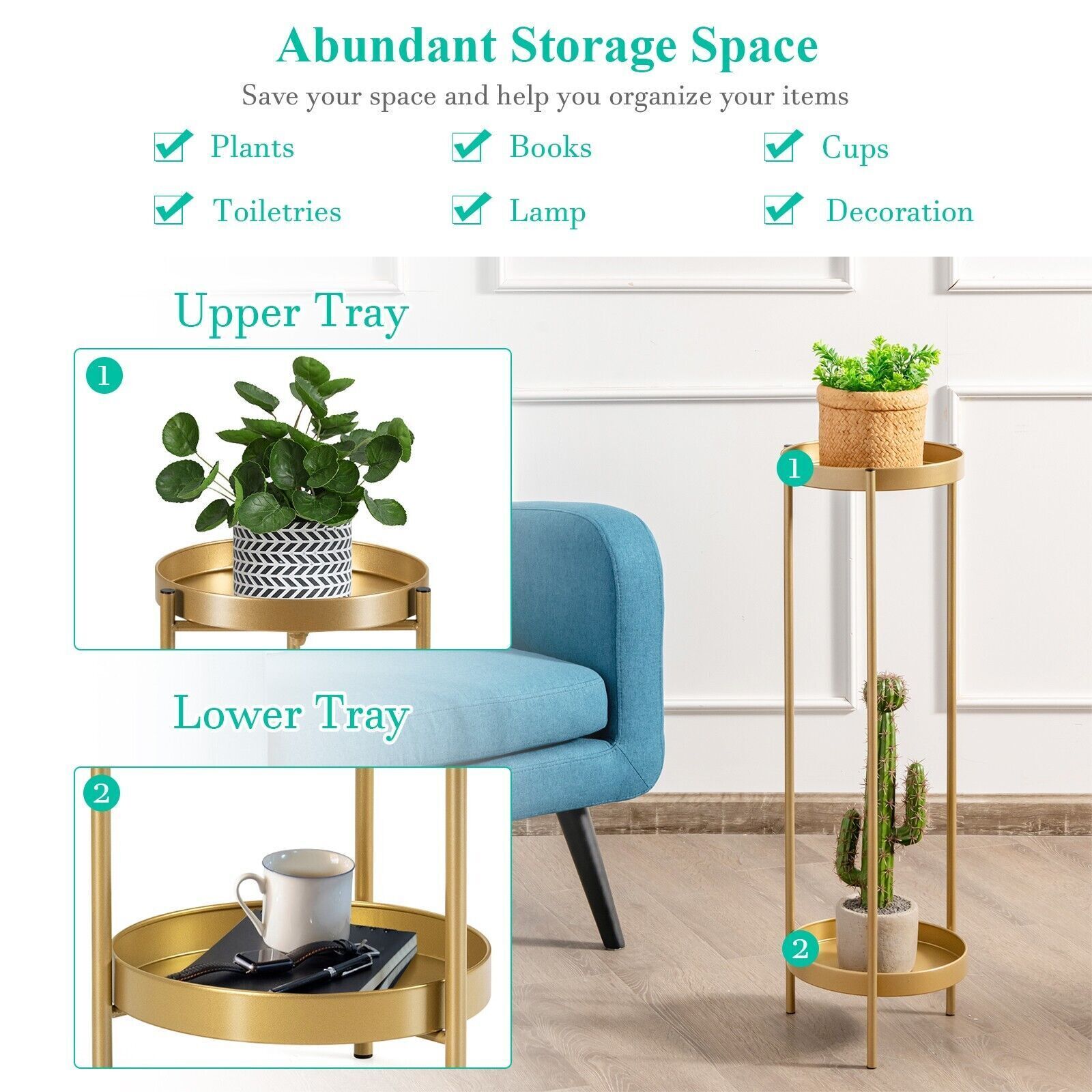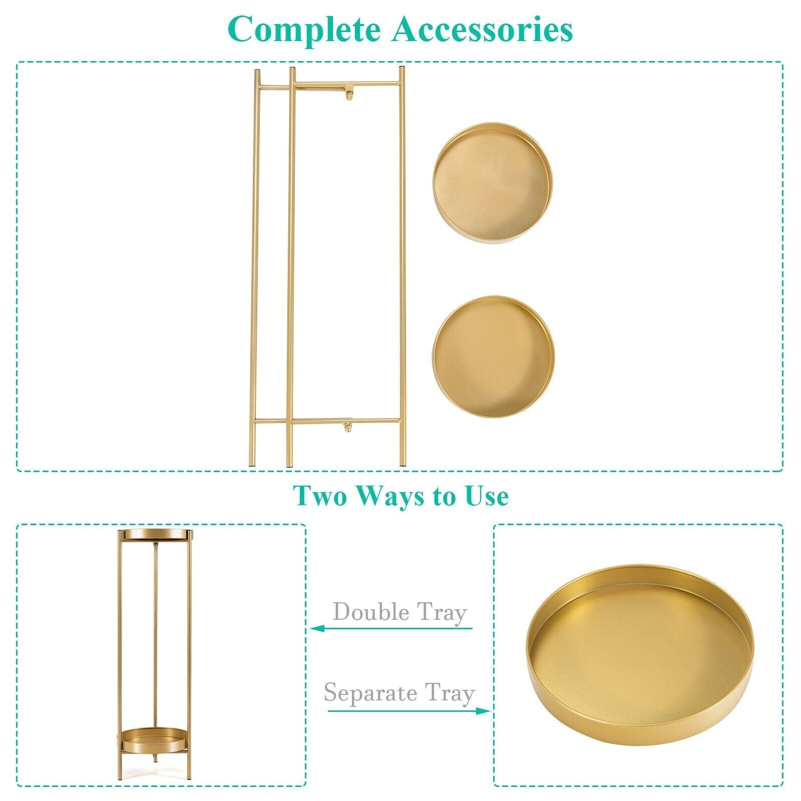 2 Tier Tray Plant Stand Metal Flower Stand Round Flower Pot Holder Bedside Table