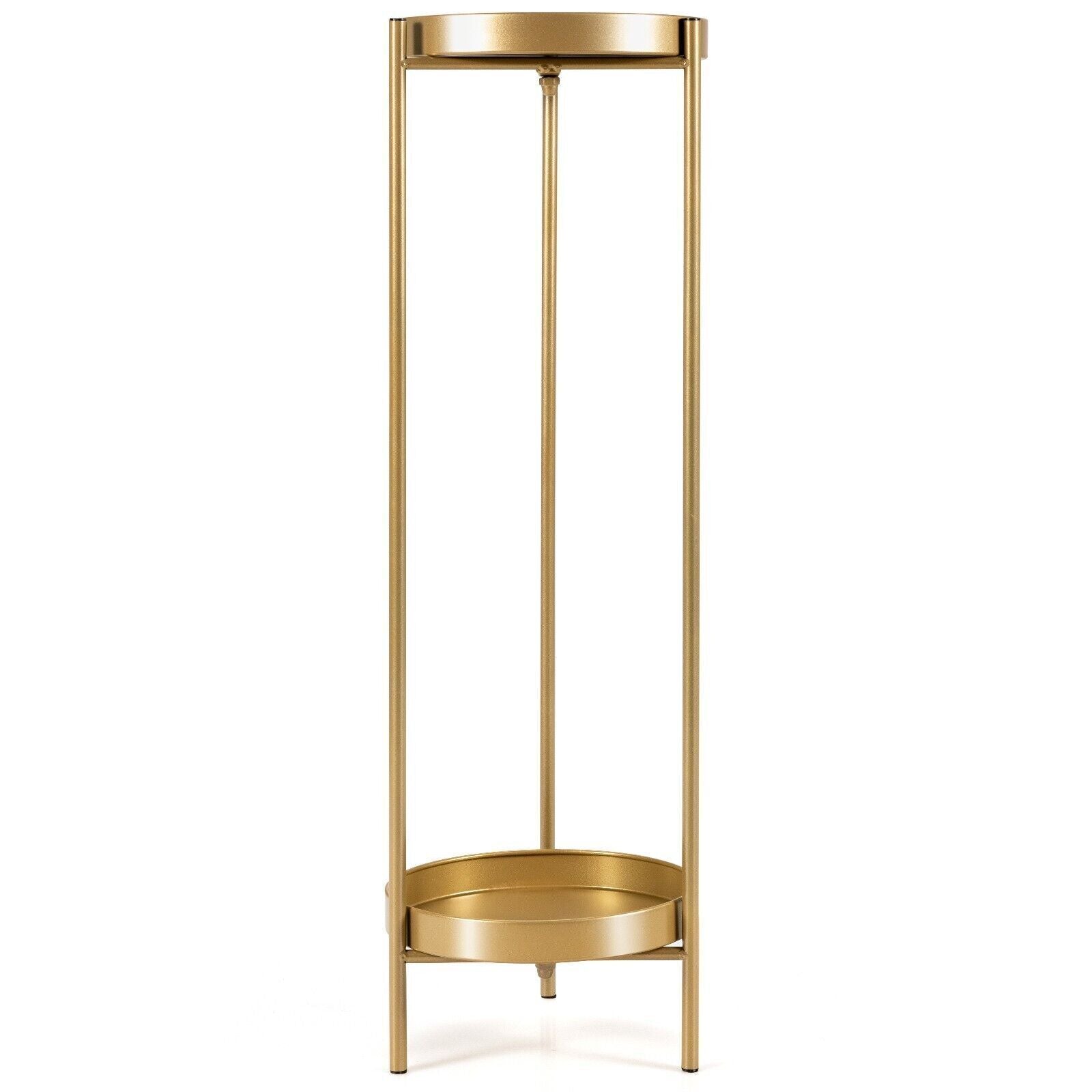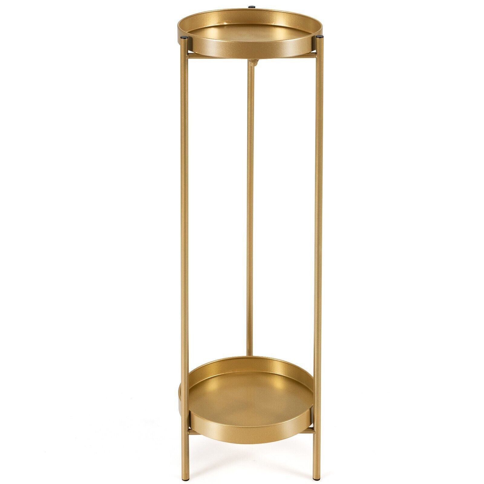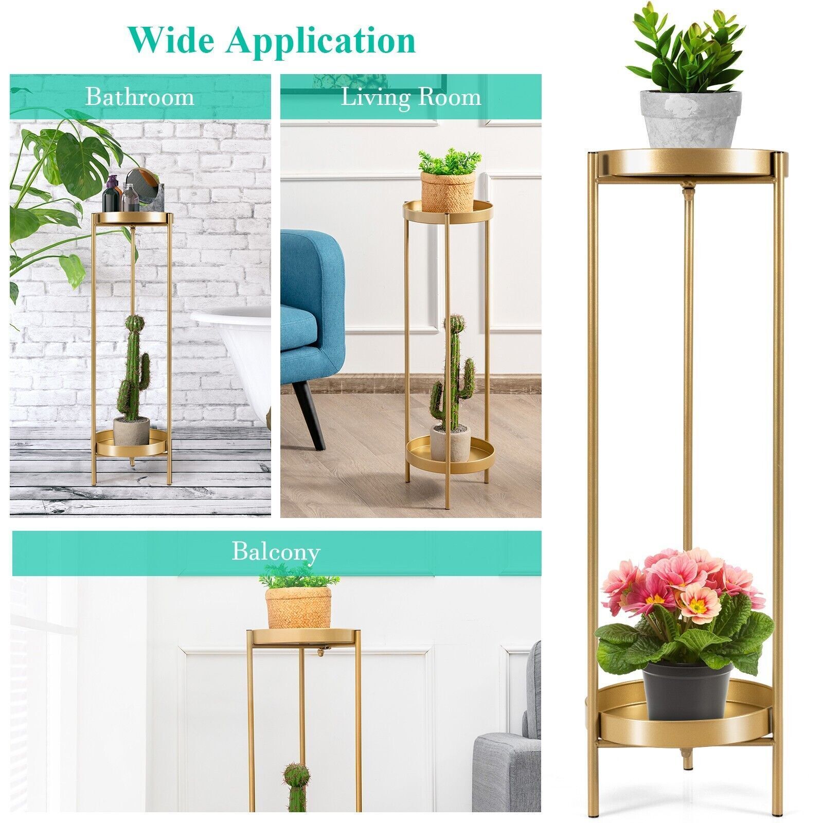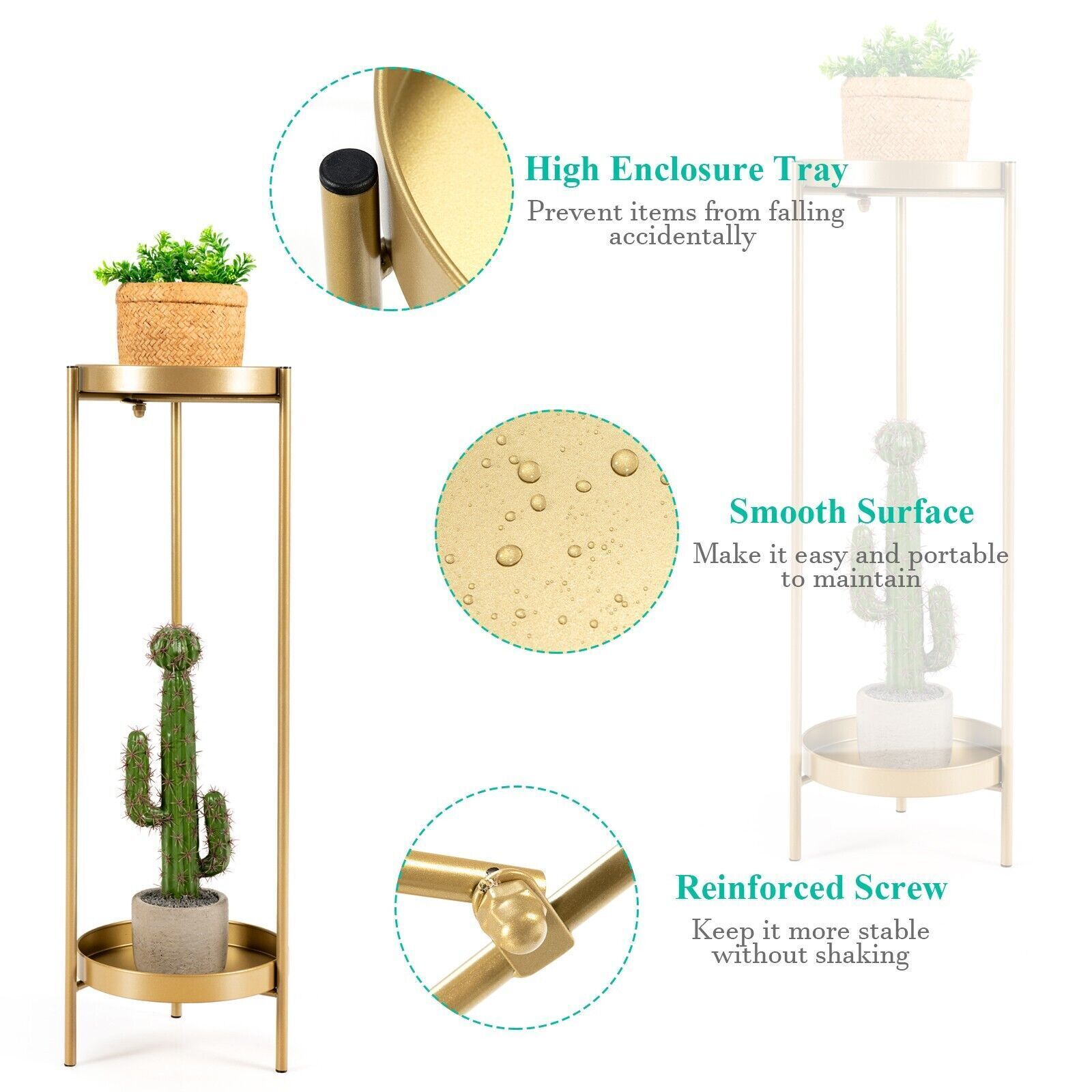 2 Tier Tray Plant Stand Metal Flower Stand Round Flower Pot Holder Bedside Table