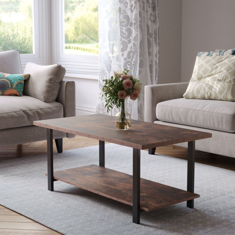 2 Tier Vintage Coffee Table Rectangle Side End Desk Shelf Living Room Furniture