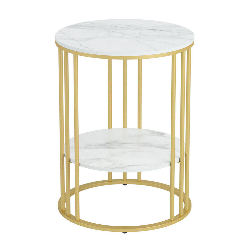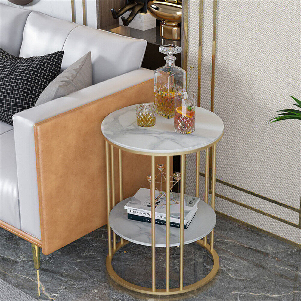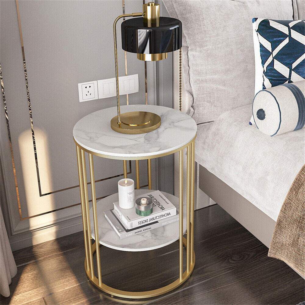 2-Tier White Marble Side Table Round Coffee Table Nightstand Jewellery Storage