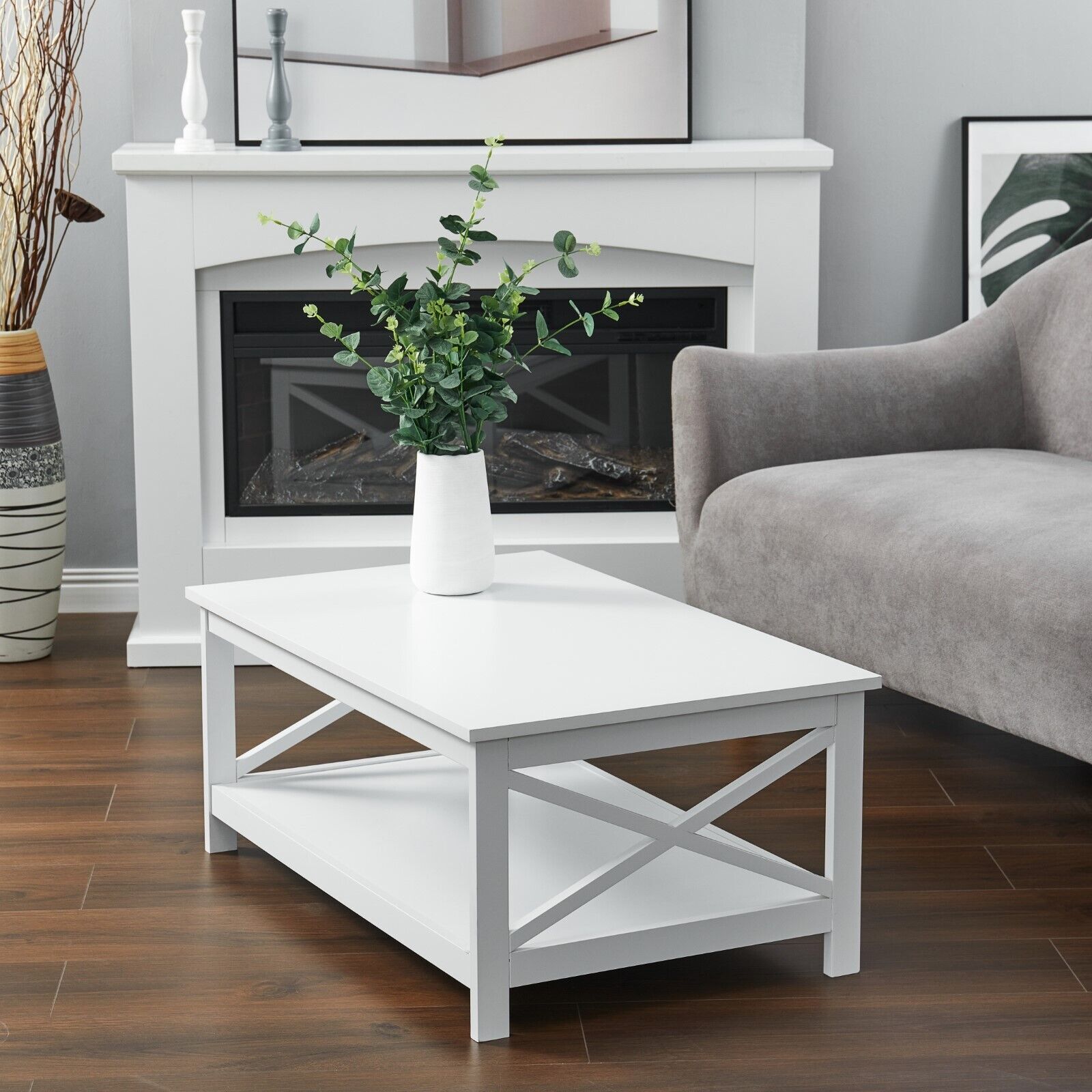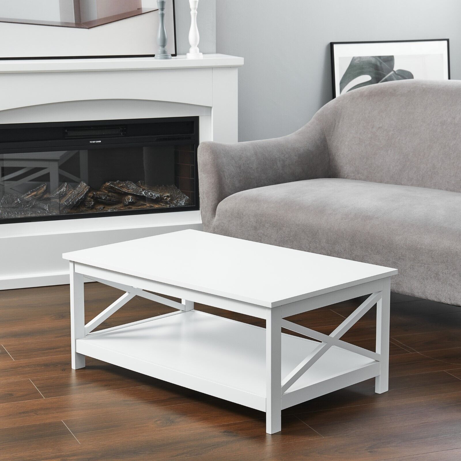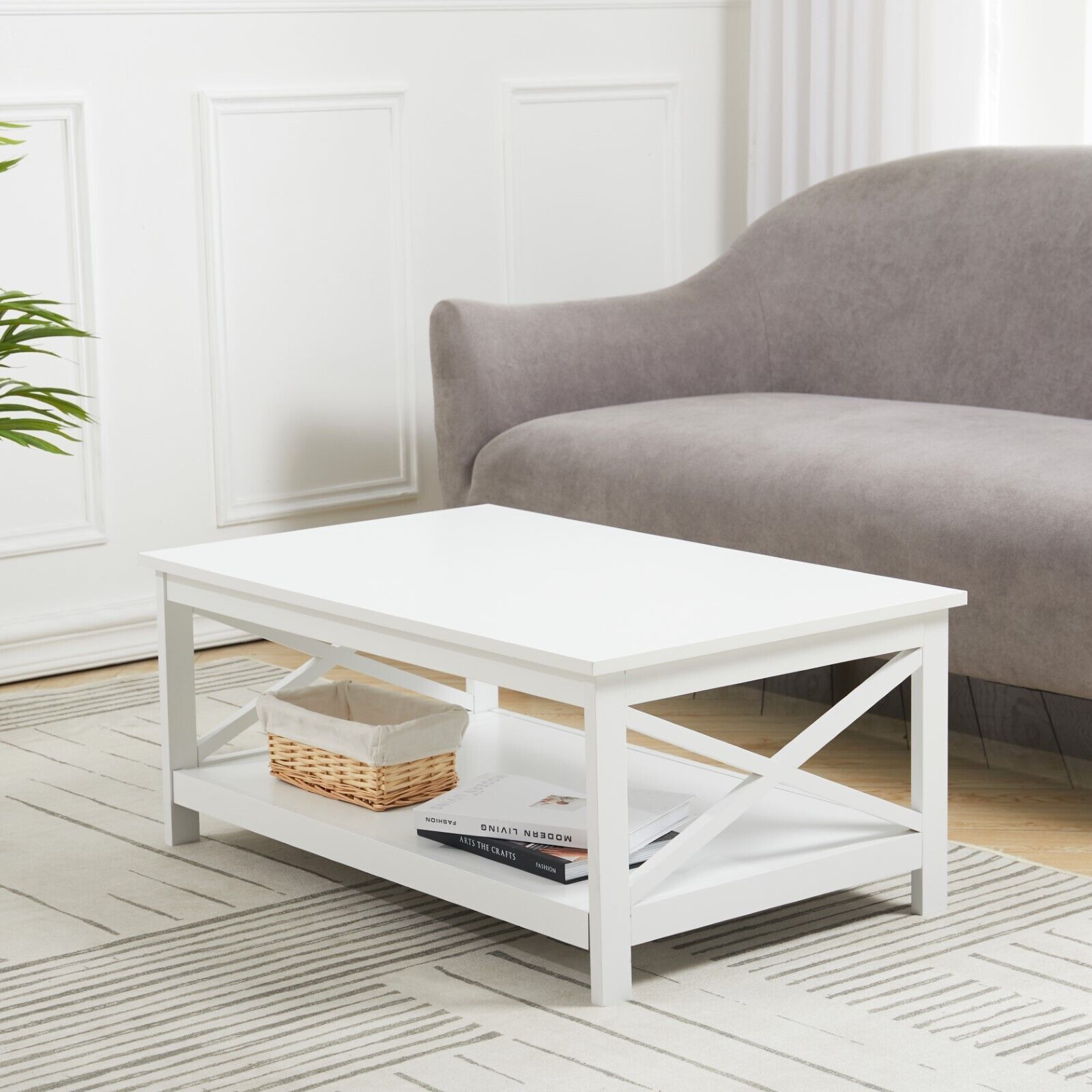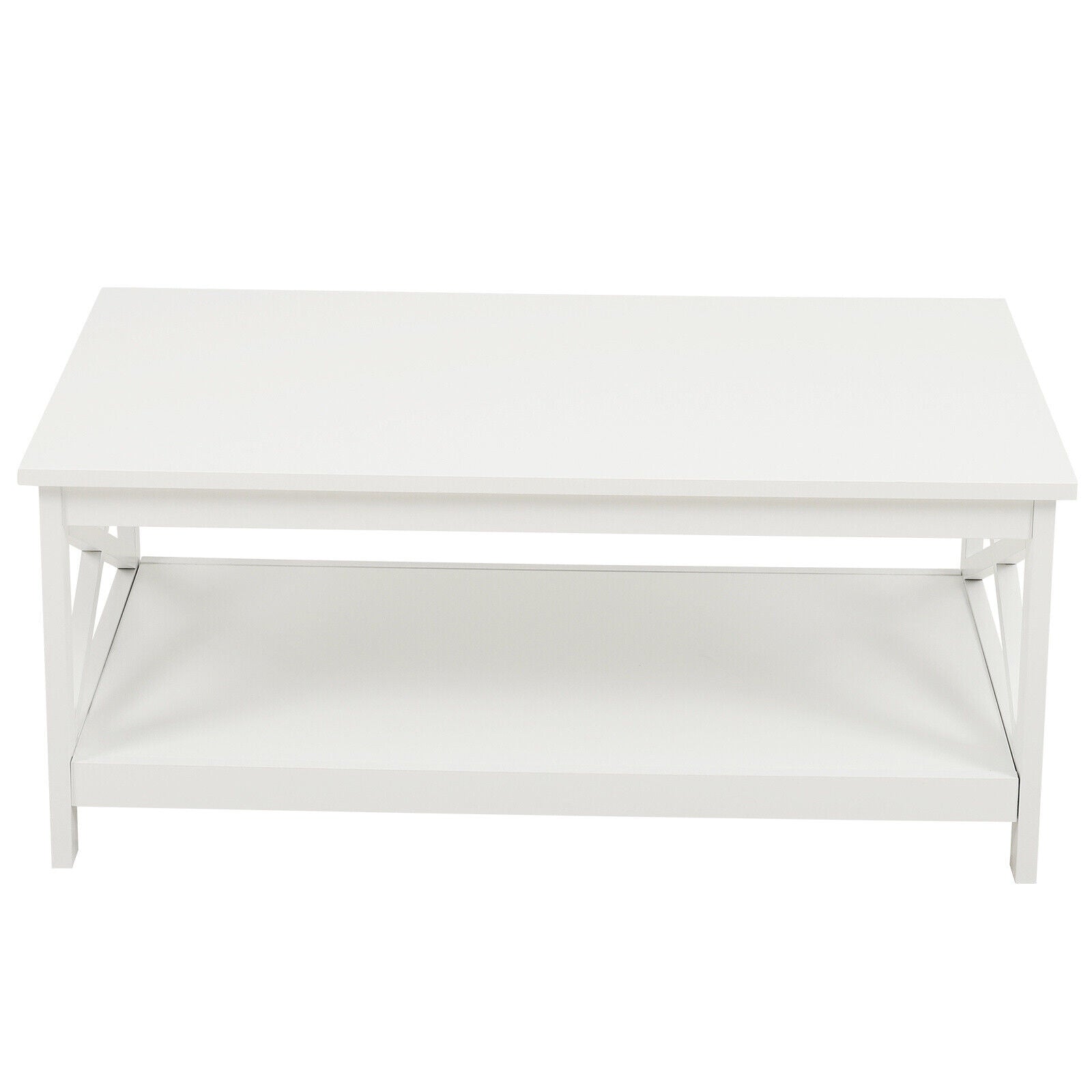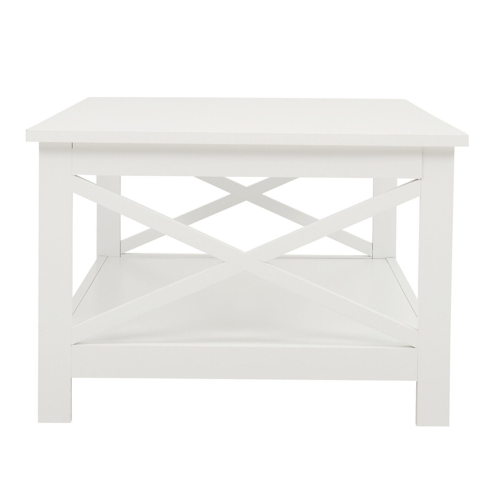 2 Tier Wooden Coffee End Side Table Modern White with Storage Shelf Living Room