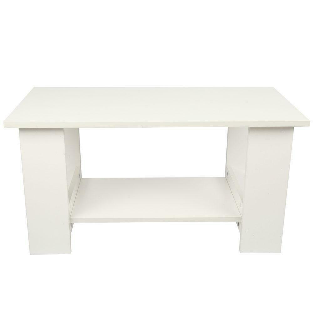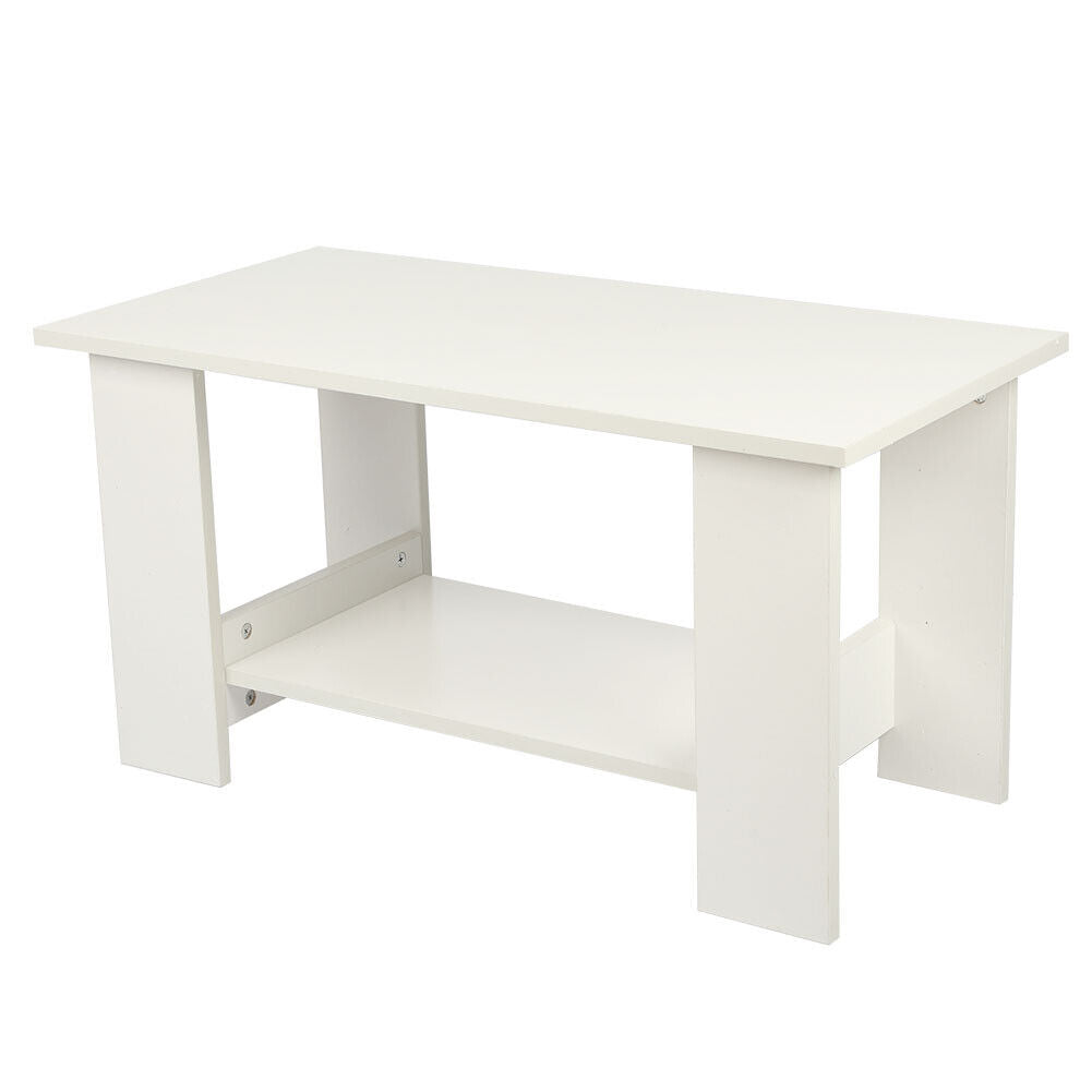 2 Tier Wooden Coffee Table Rectangle Living Room Table Storage Open Low Shelf