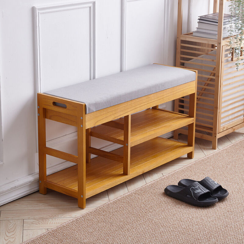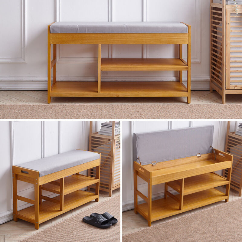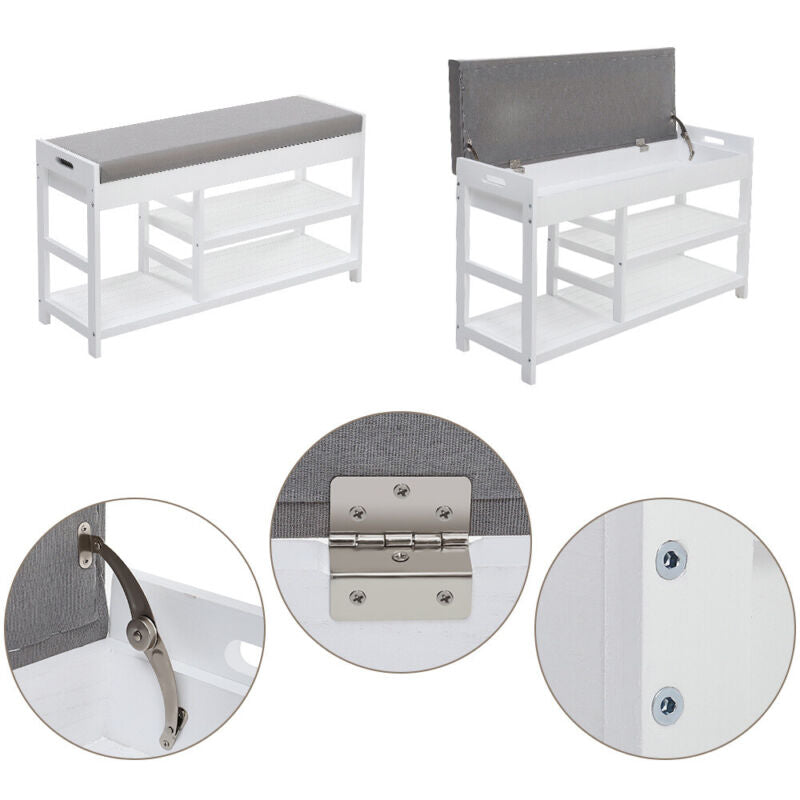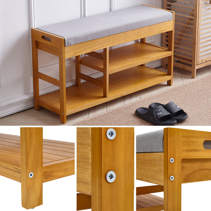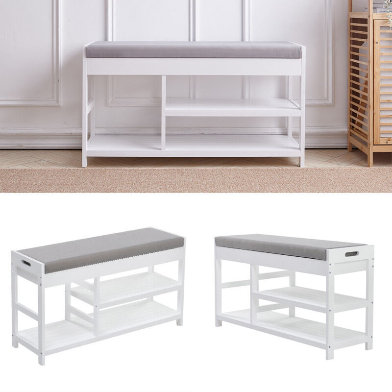 2 Tier Wooden Hallway Shoe Rack Storage Bench Bed End Stool Fabric Padded Seat