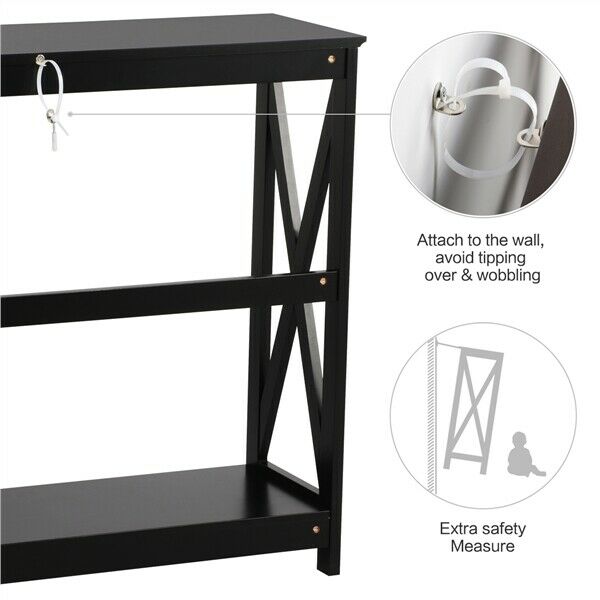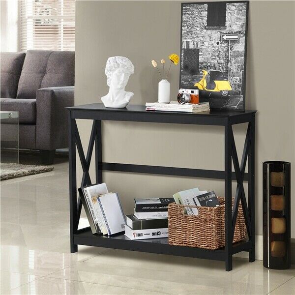 2 Tier X-Design Console Table Hallway Side Table Bookshelf Entryway Table Black