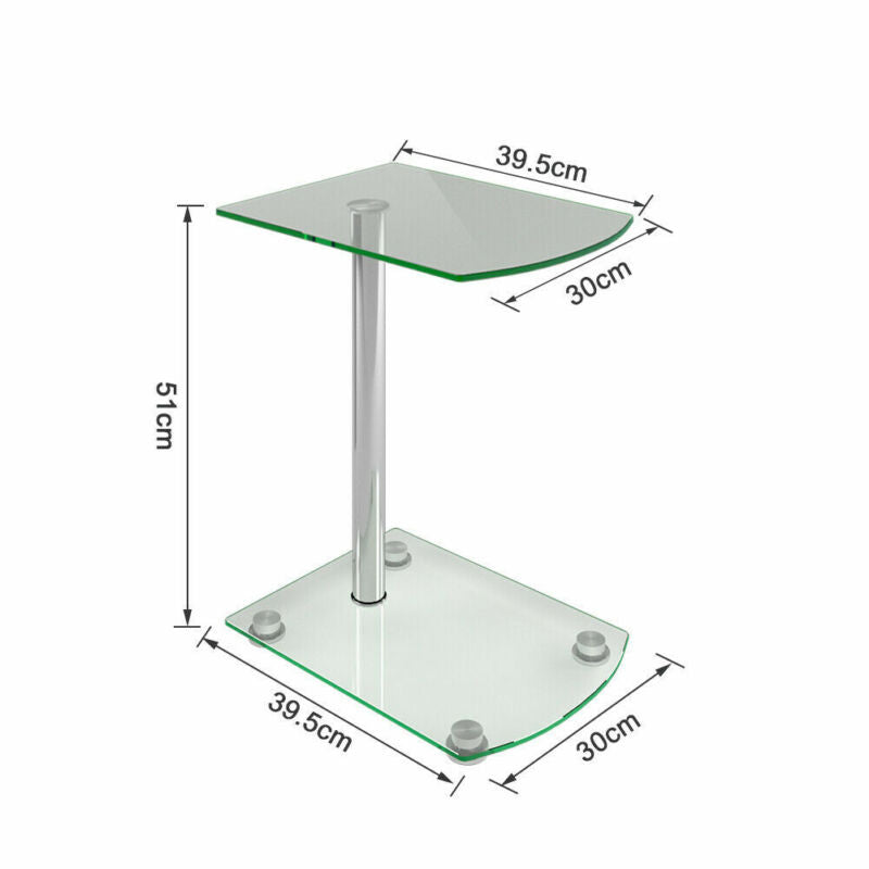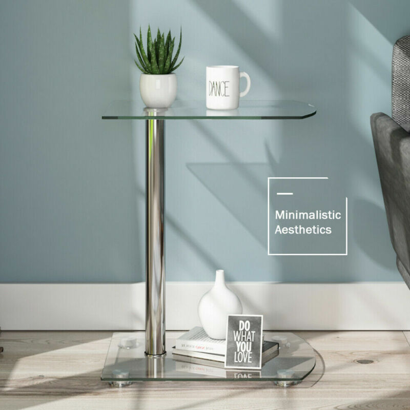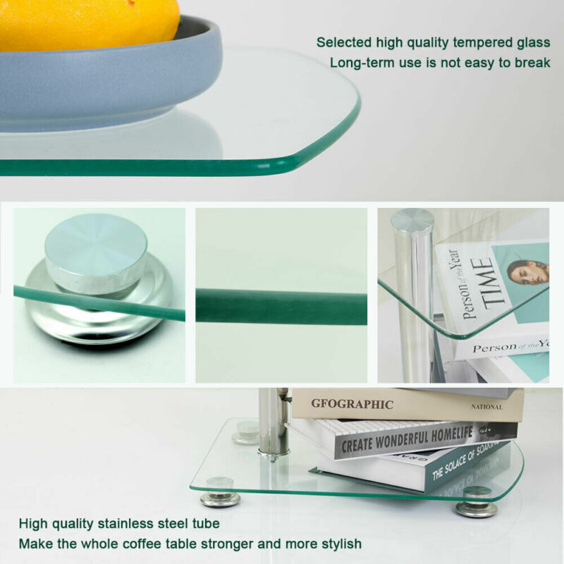 2-Tiers Clear Glass Sofa Side/End Coffee Table Silver Nightstand Corner Bedroom