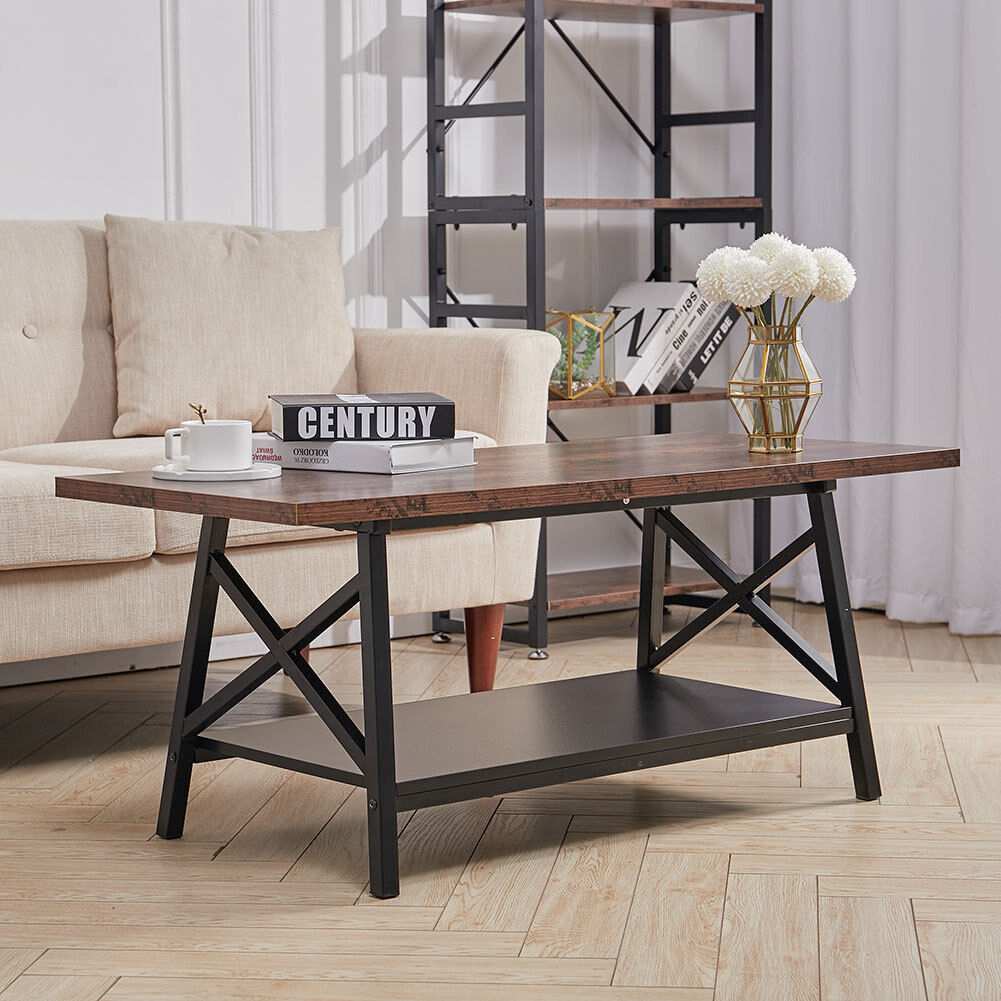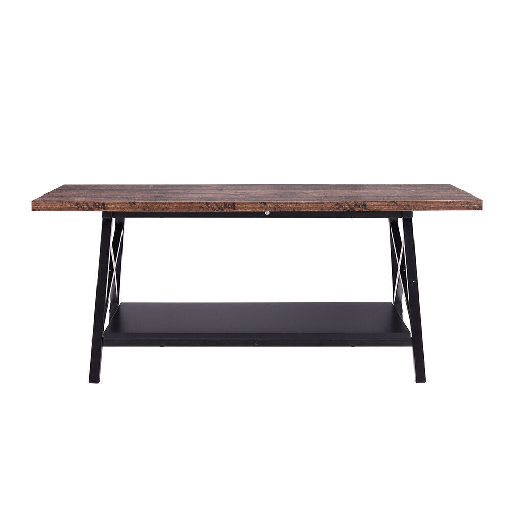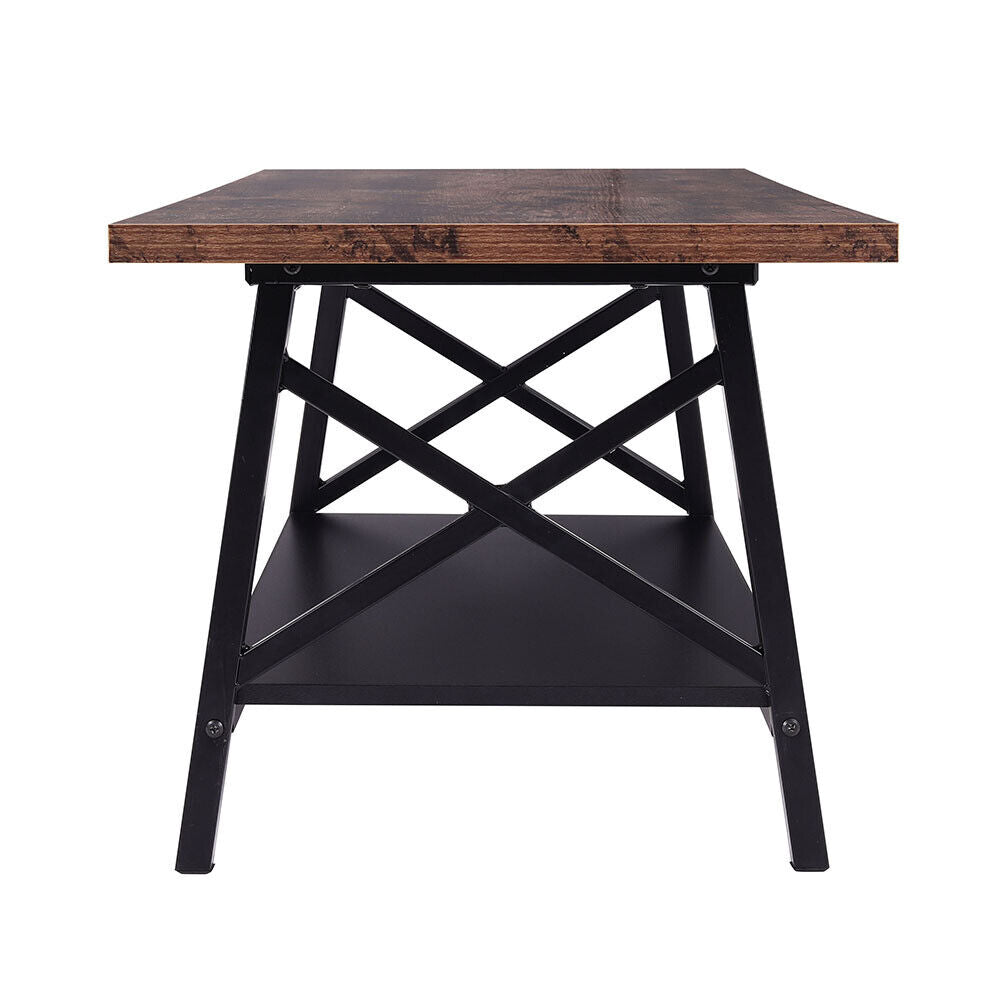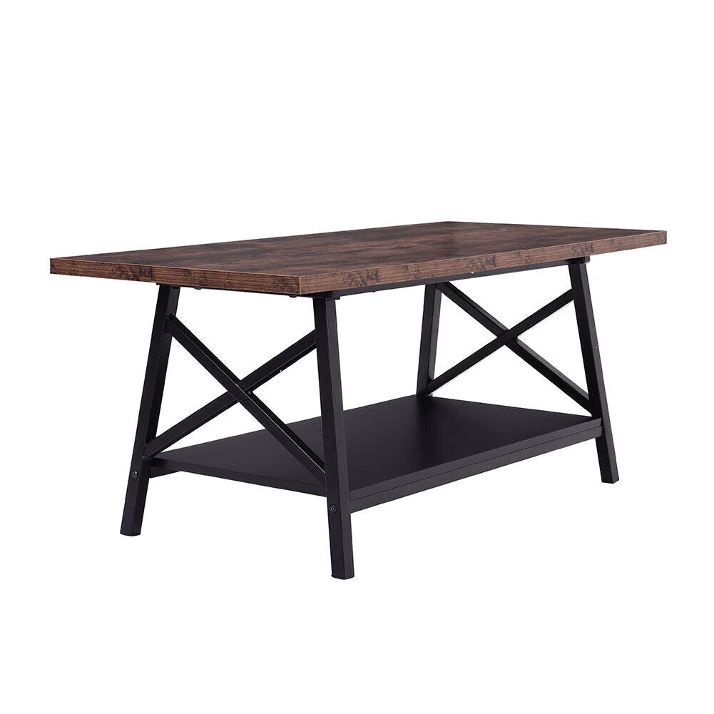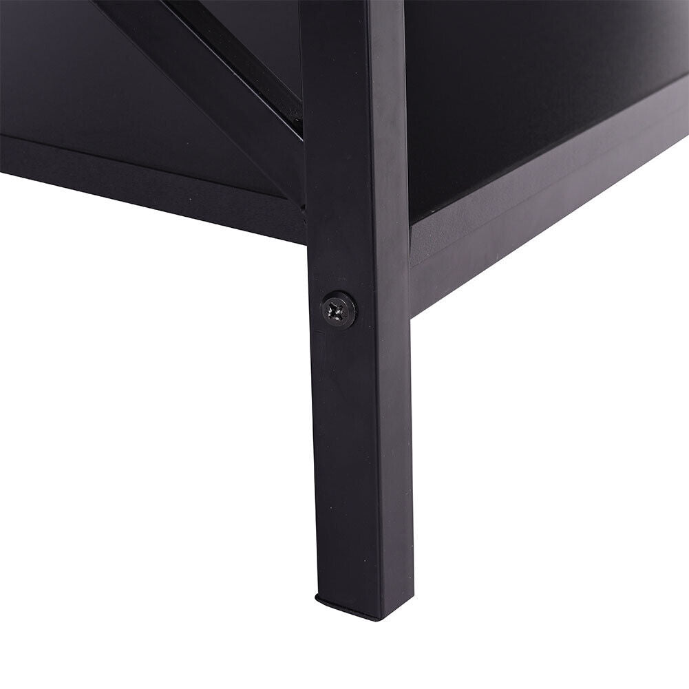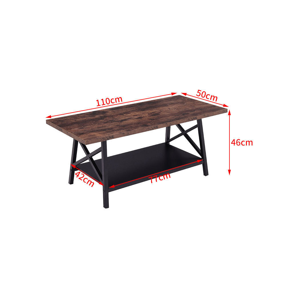 2 Tiers Coffee Table Black Storage Shelf Rack Industrial Style Rustic Wood Unit