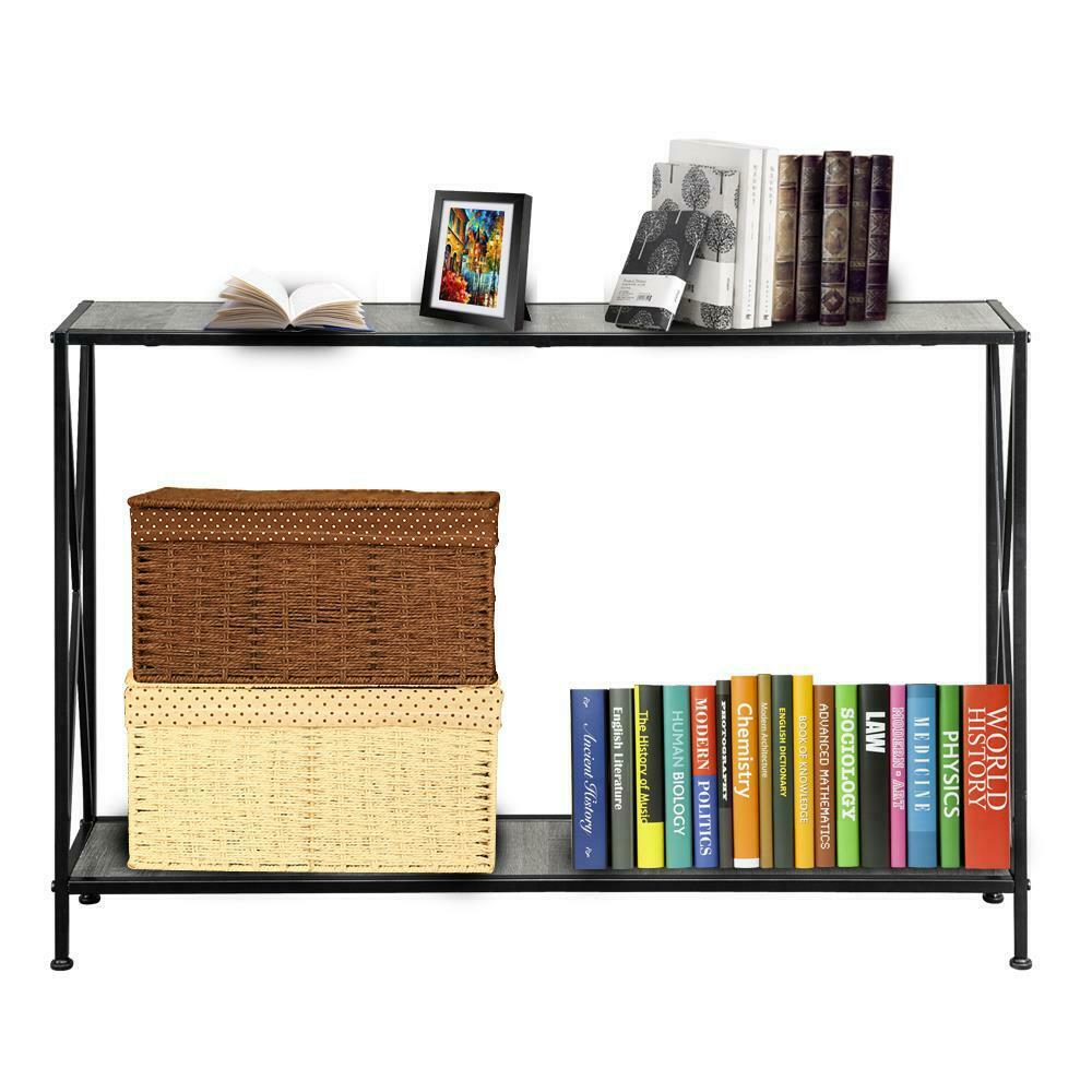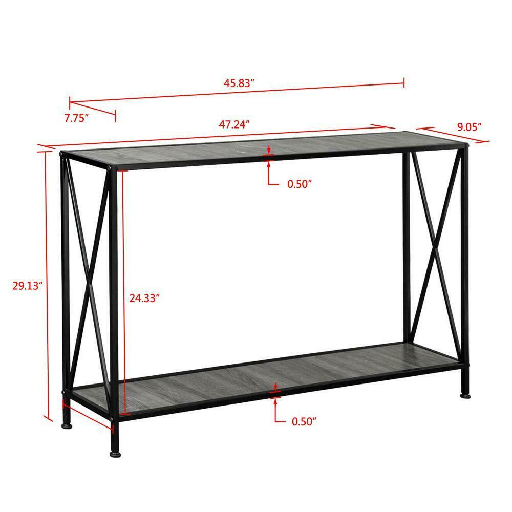 2 Tiers Console Table X-Shaped Hallway TableSide Table with Storage Shelf Black