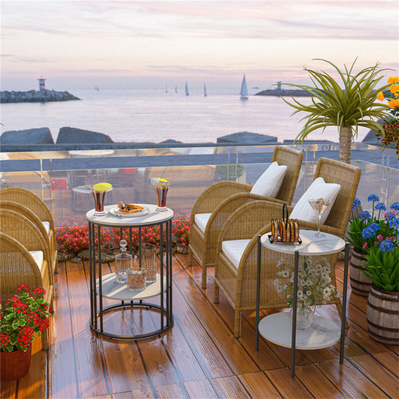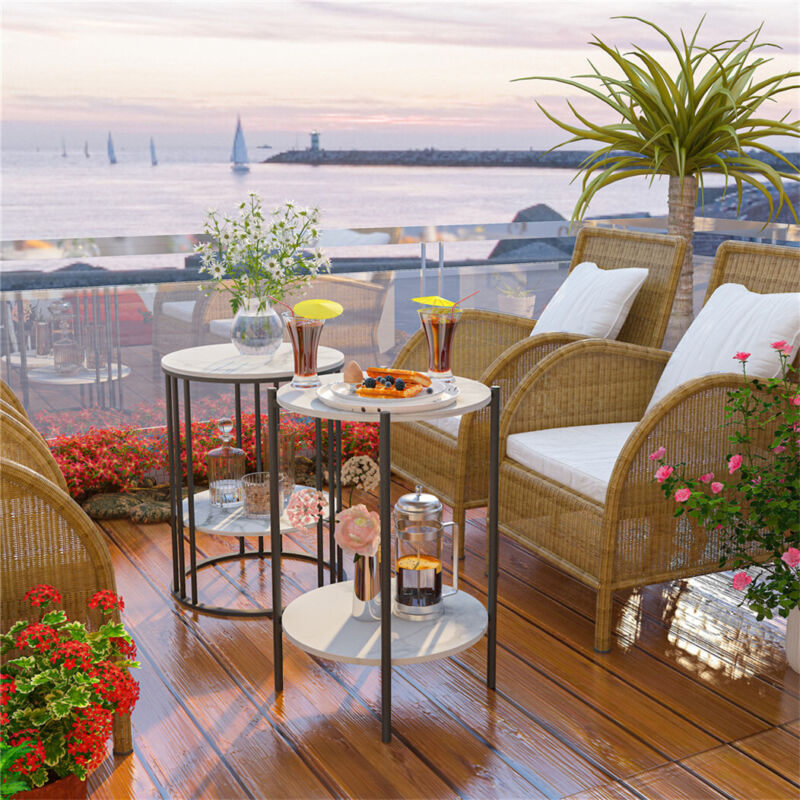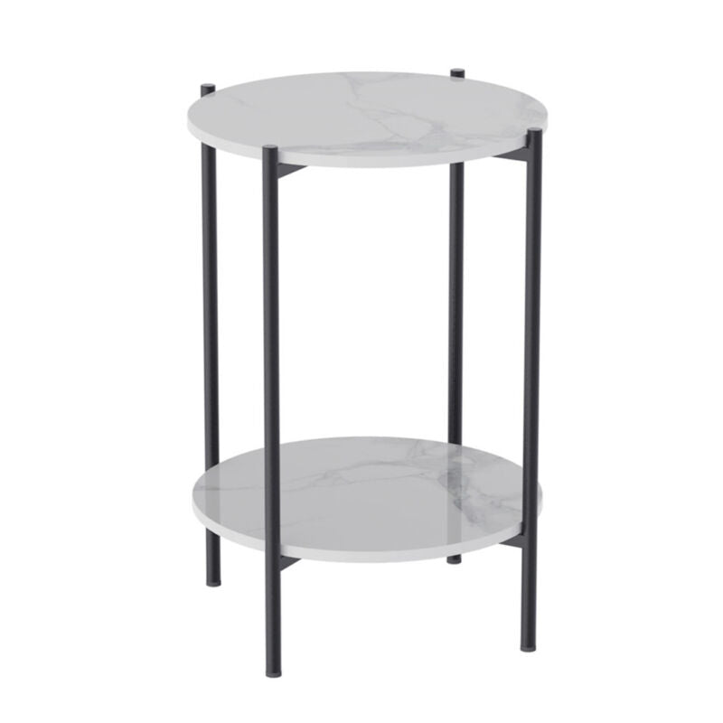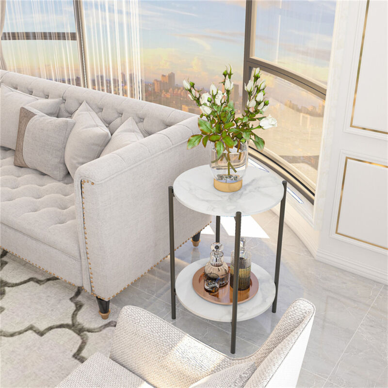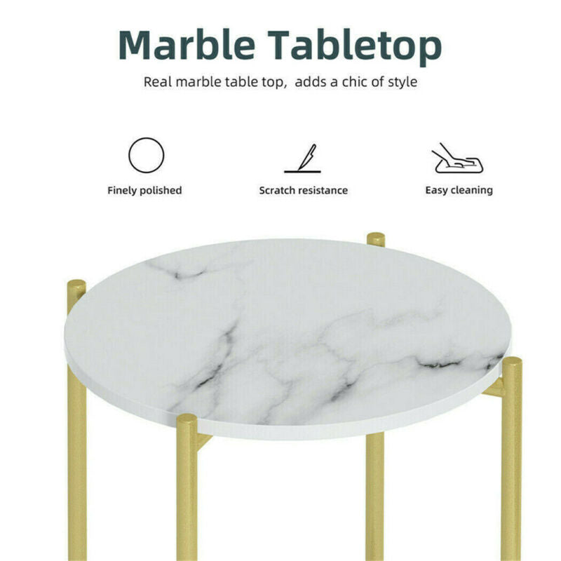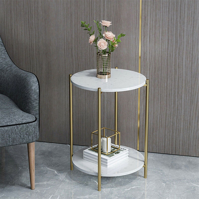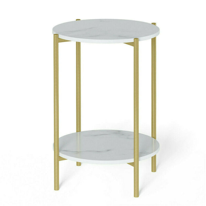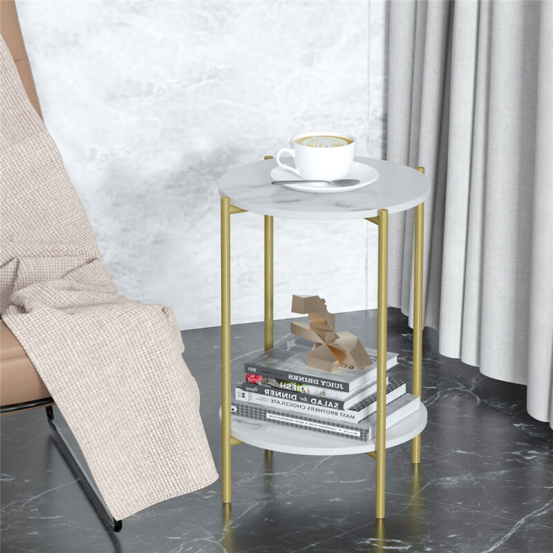2 Tiers Round Marble Side End Table Center Table& Storage Gold/Black Metal Frame