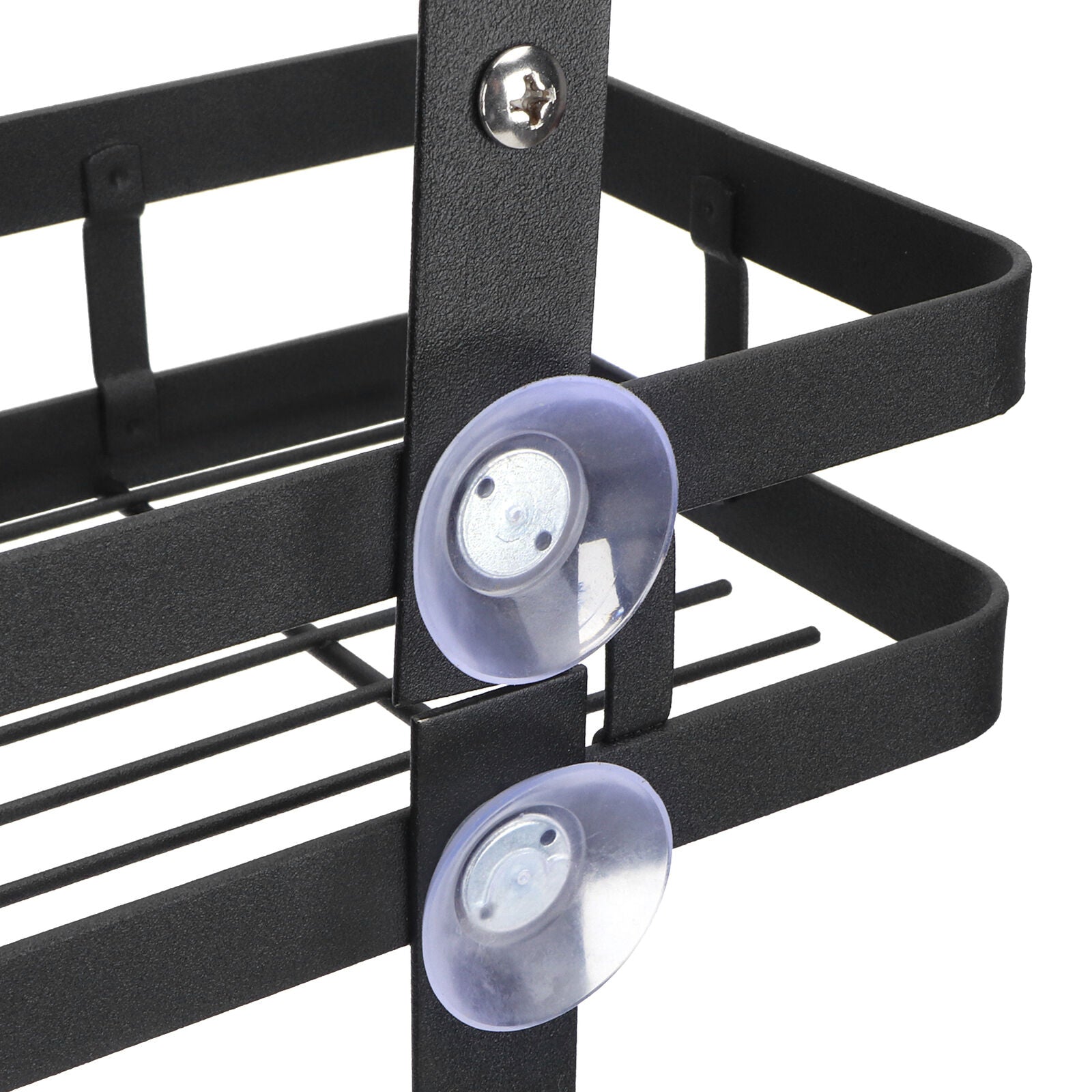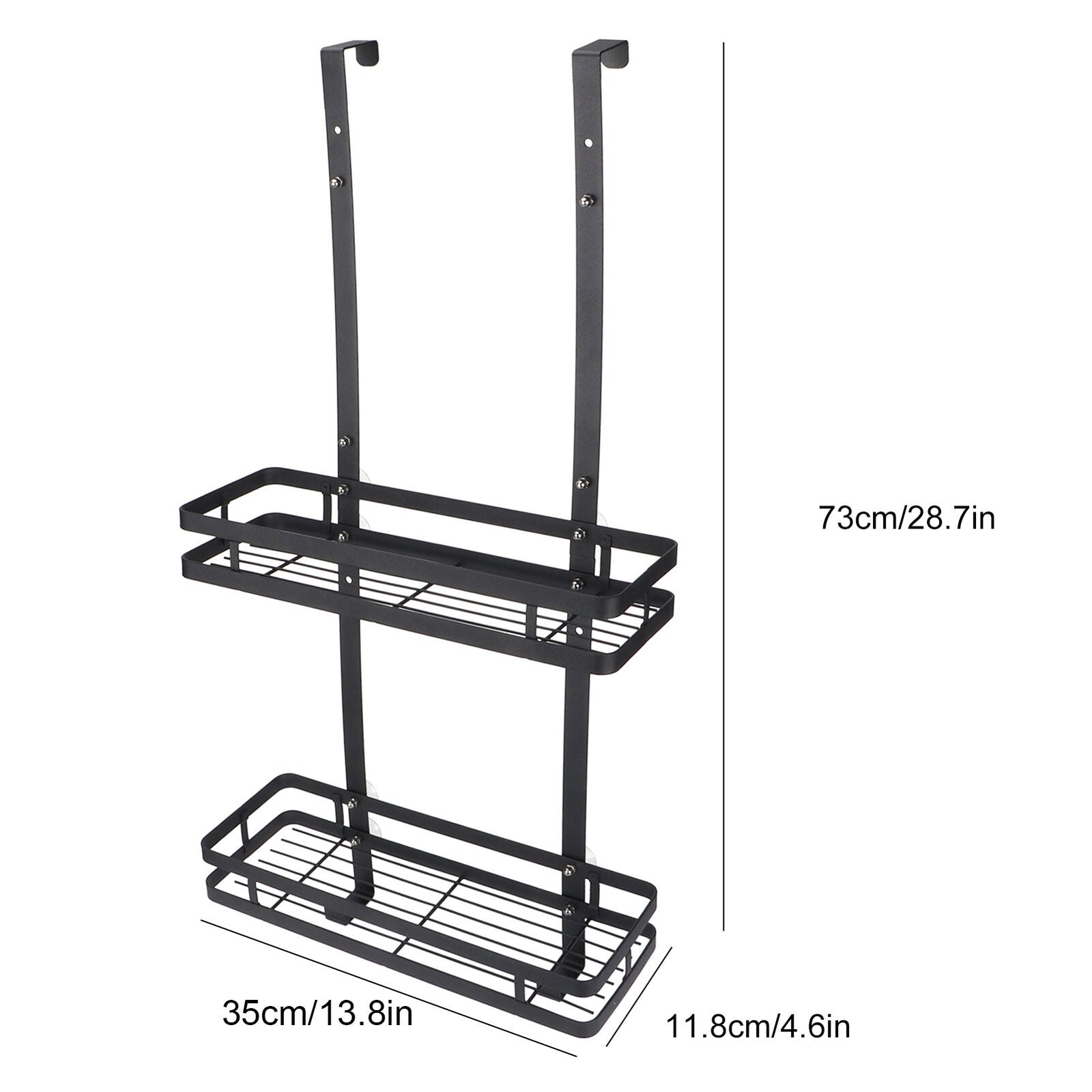 2 Tiers Shower Holder Shelf Rack Bathroom Door Hanging Tray Black Basket 73x35cm