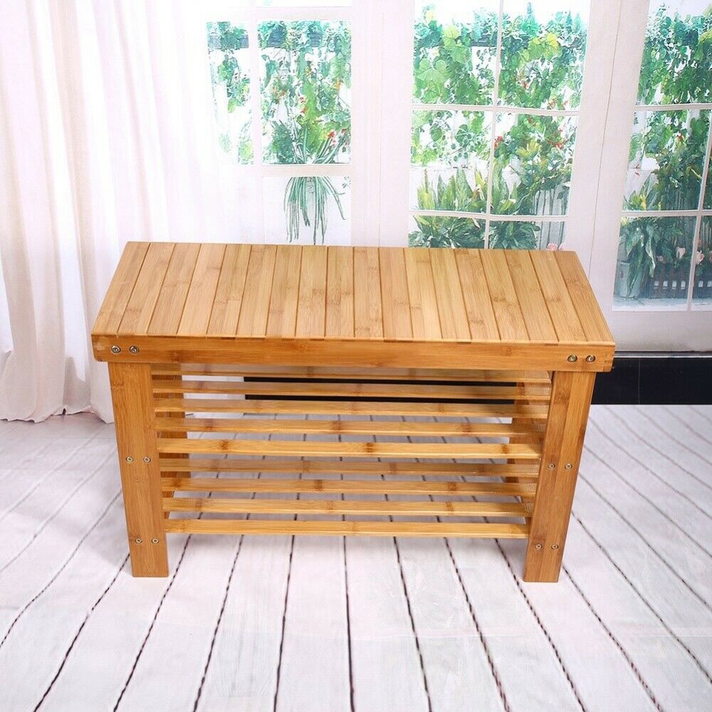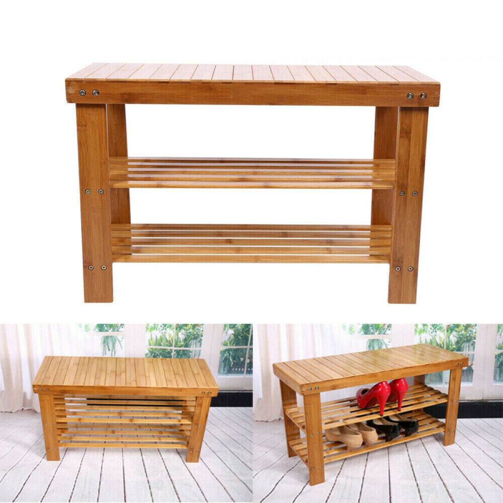 2 Tires Bamboo Wooden Shoe Rack Bench Organiser Stand Storage Shelf Seat