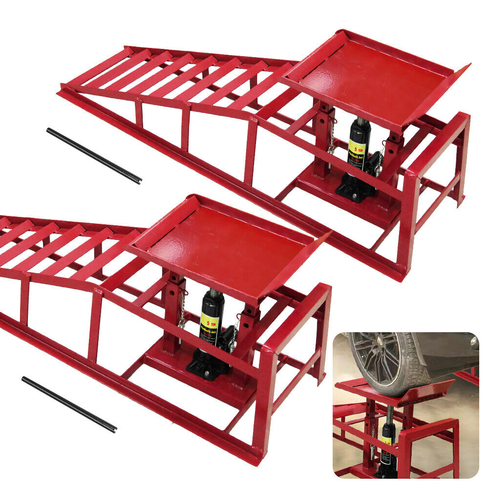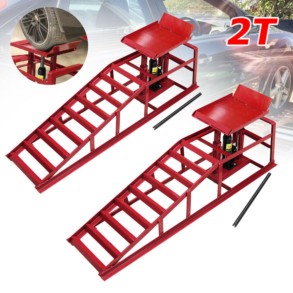 2 Ton Hydraulic Vehicle Car Ramp Jack Lift Adjustable Garage Workshop Red x 2 UK