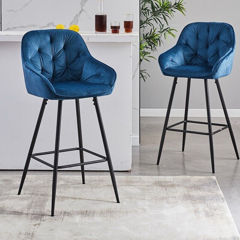2* Velvet Bar Stools Breakfast Bar stool Pub Chairs Padded Seat Metal Leg CLIPOP