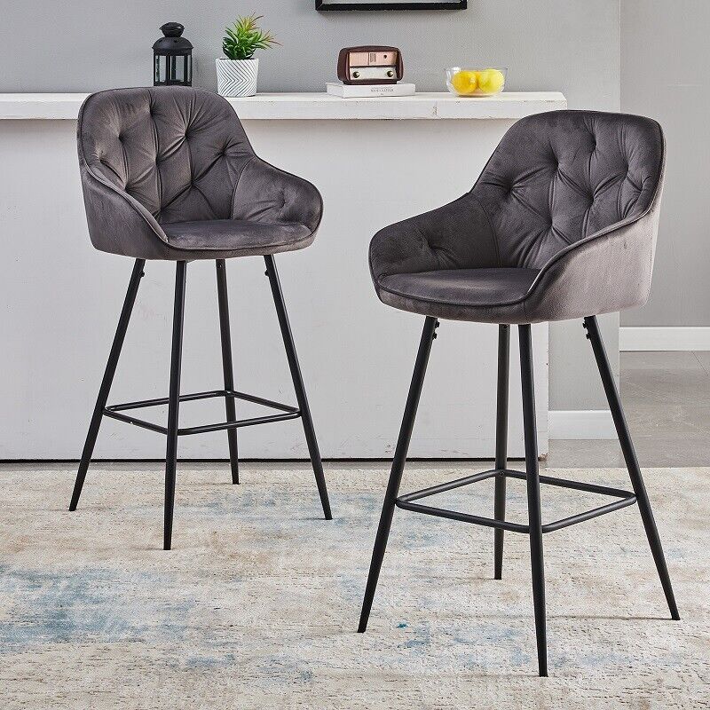 2* Velvet Bar Stools Breakfast Bar stool Pub Chairs Padded Seat Metal Leg CLIPOP
