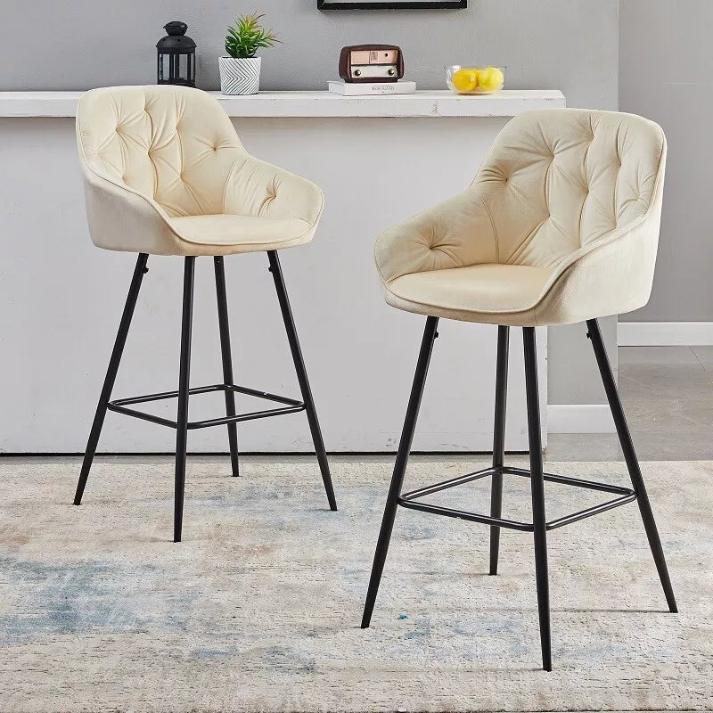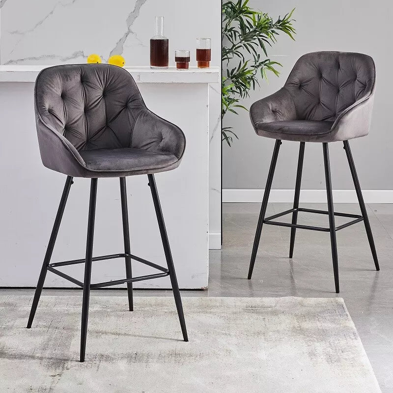 2* Velvet Bar Stools Breakfast Bar stool Pub Chairs Padded Seat Metal Leg CLIPOP