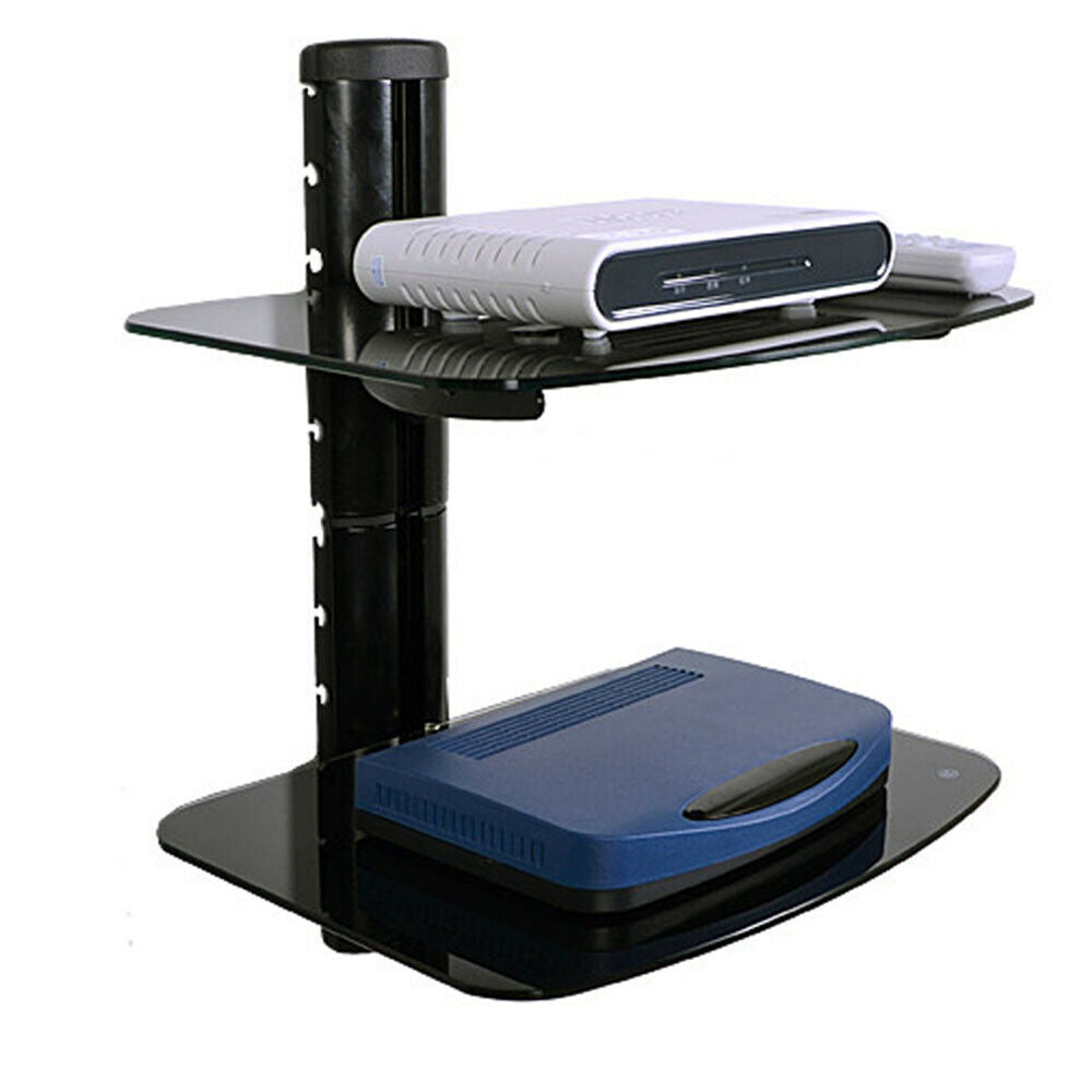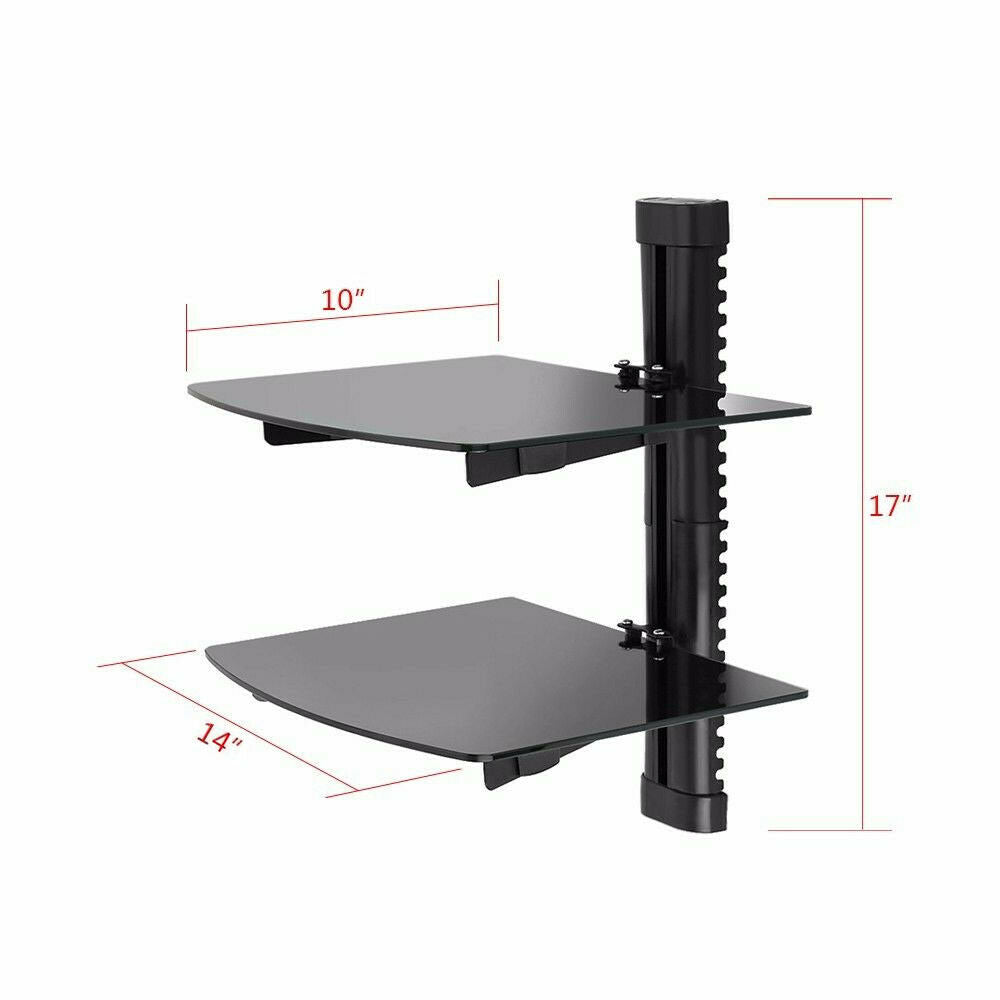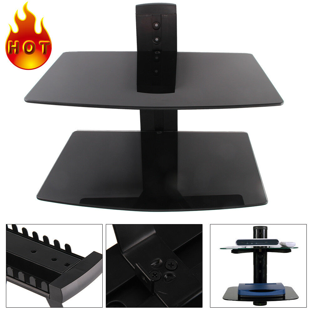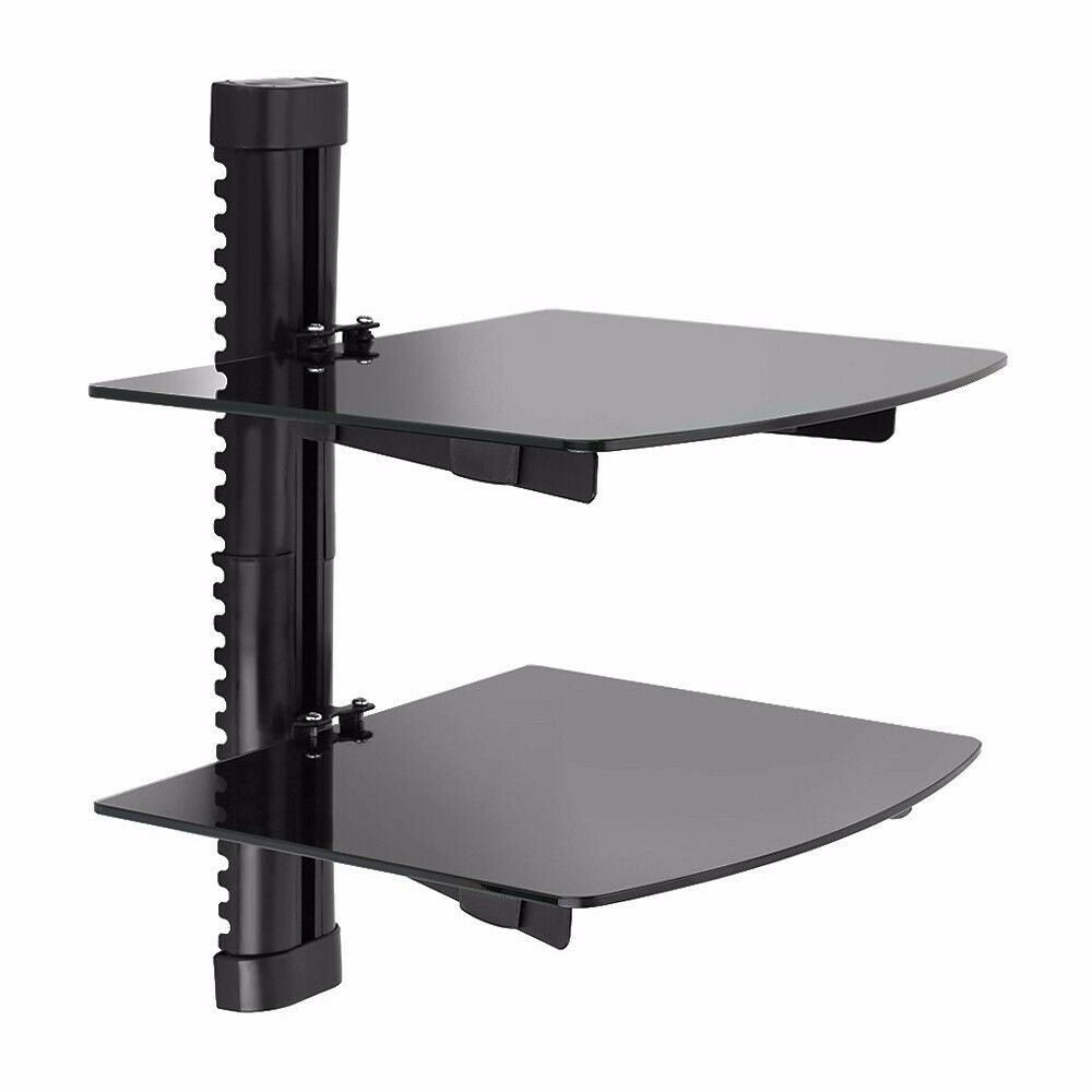 2 Wall Mount Shelf Floating Black Glass Bracket For Xbox PS4 Sky TV DVD Shelves
