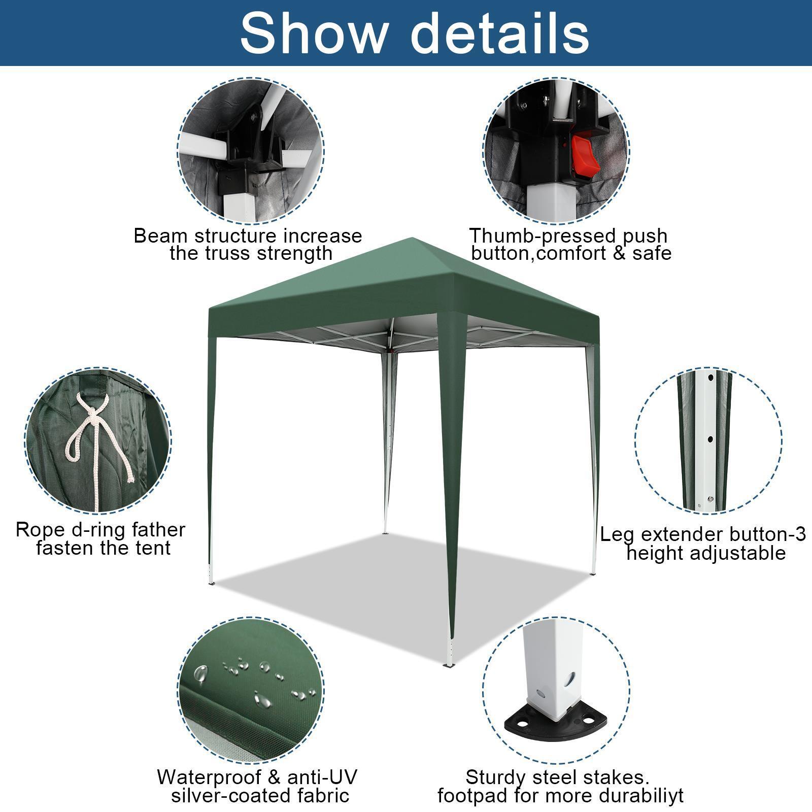 2 x 2 m Garden Wedding Pop-Up Party Tent Canopy Sun shade Patio Gazebo Green