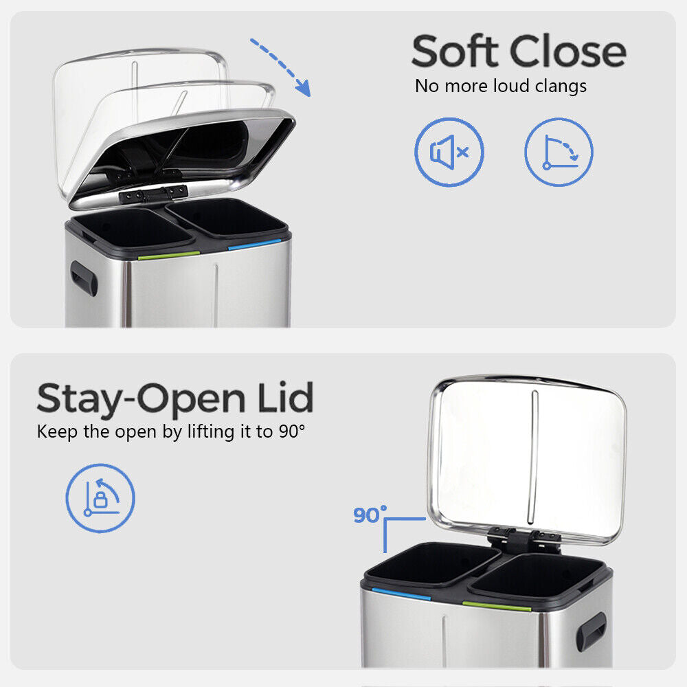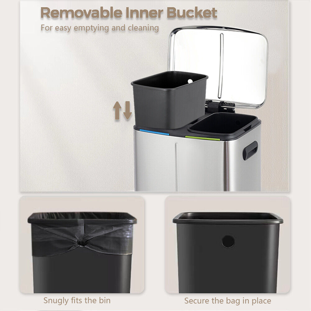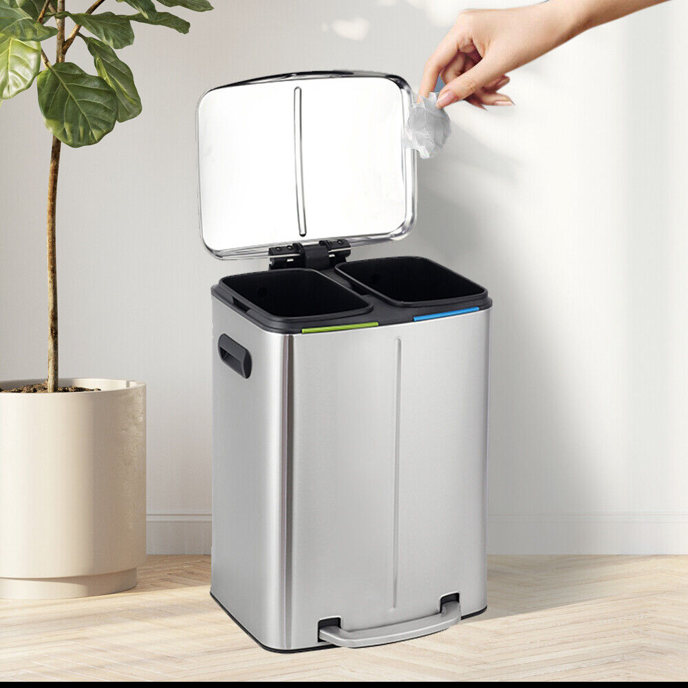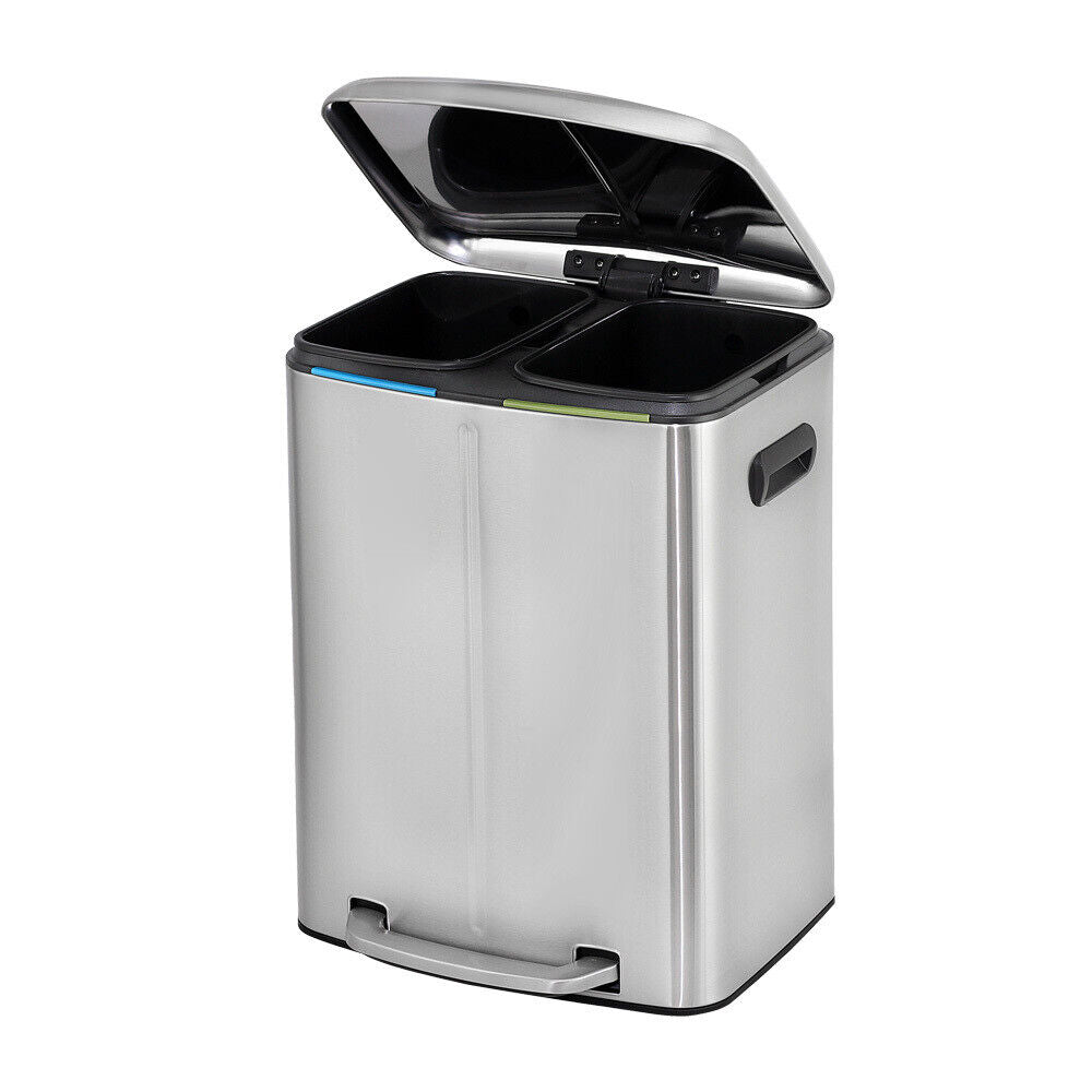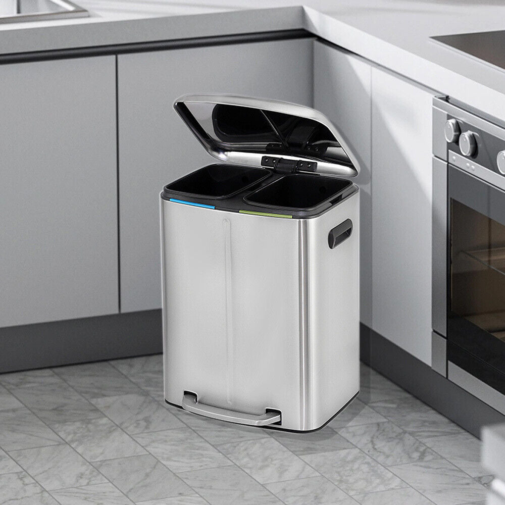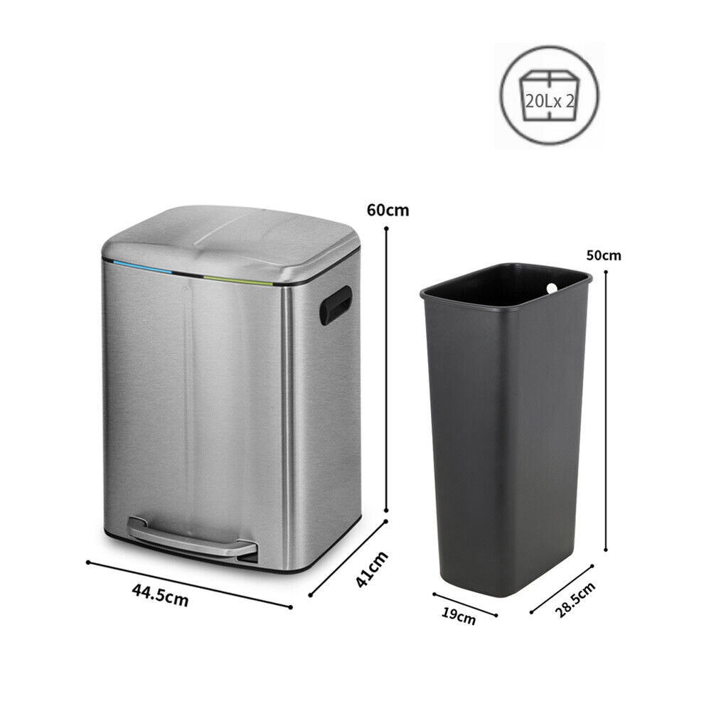 2 x 20L Metal Step Bin, with Plastic Inner Buckets,Double Rubbish Bin