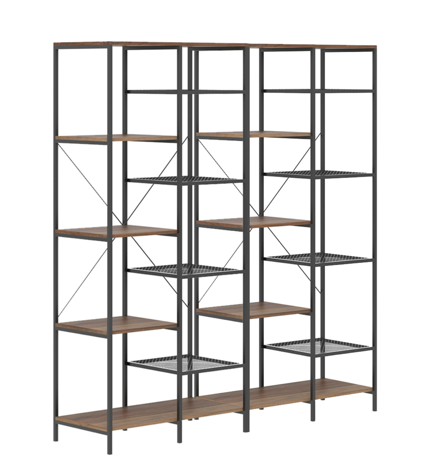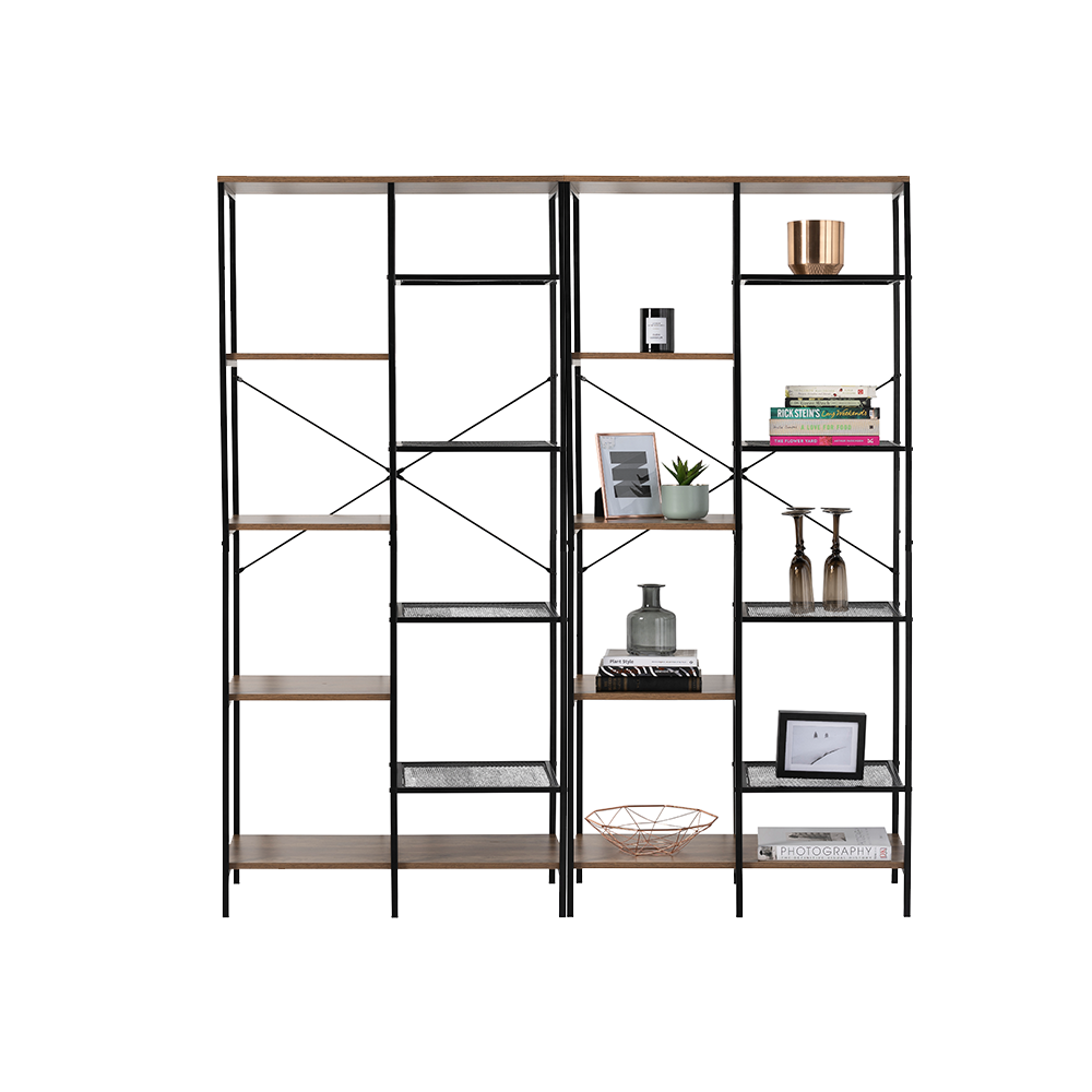 2 x 9 Tier Storage Bookshelf Mid Oak Style With Industrial Details 1700mmH