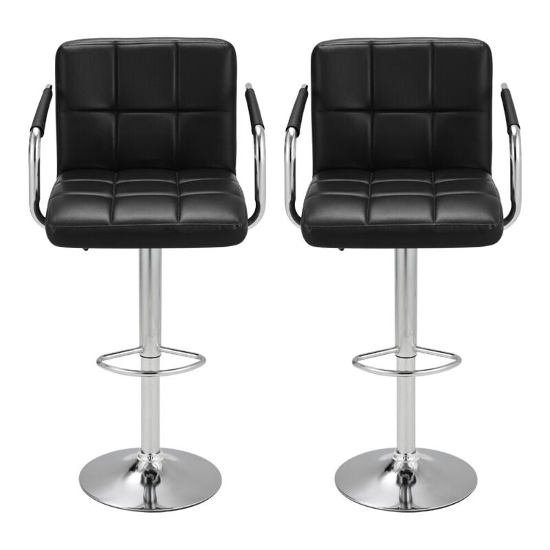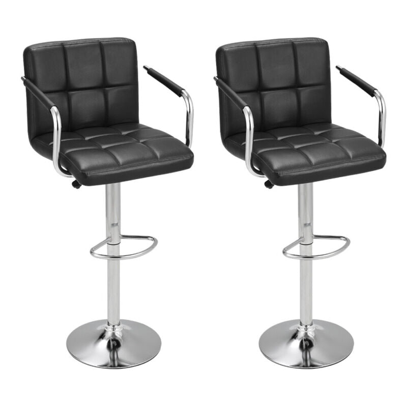2 X Bar Stools Height Adjustable Swivel Bar Kitchen Chair With Backrest Armrest