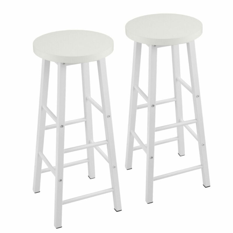 2 x Bar Stools Retro Breakfast Kitchen Bar High Chairs MDF Seat Metal Legs