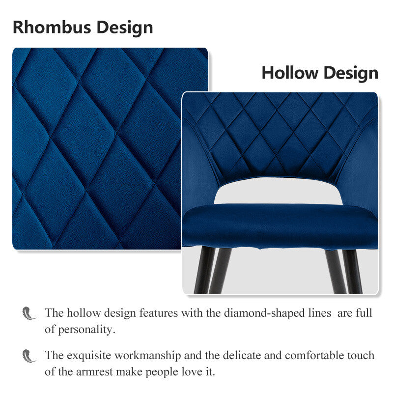 2 X Blue Dining Chair Velvet Padded Cushion Diamond Chair Kitchen Dining Room