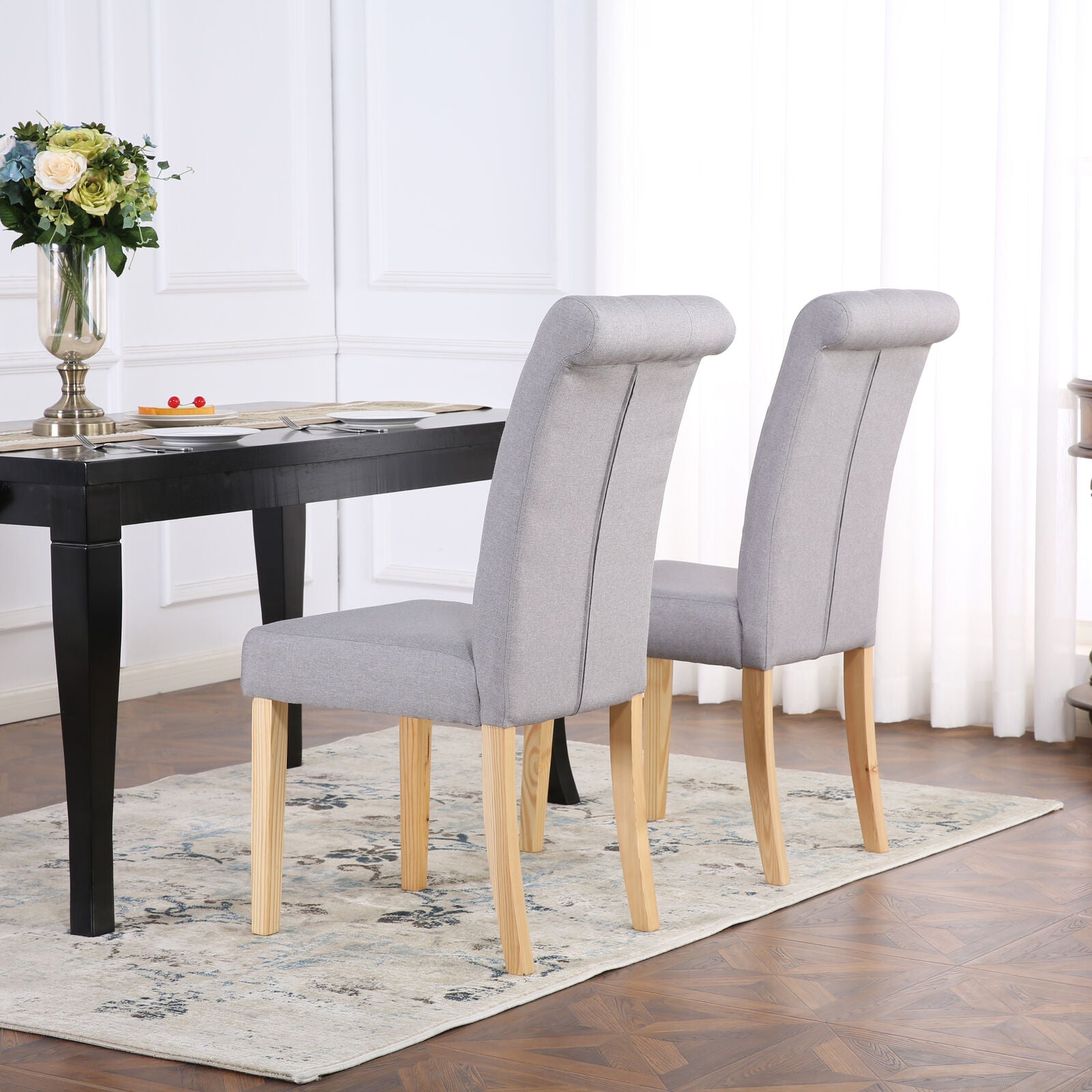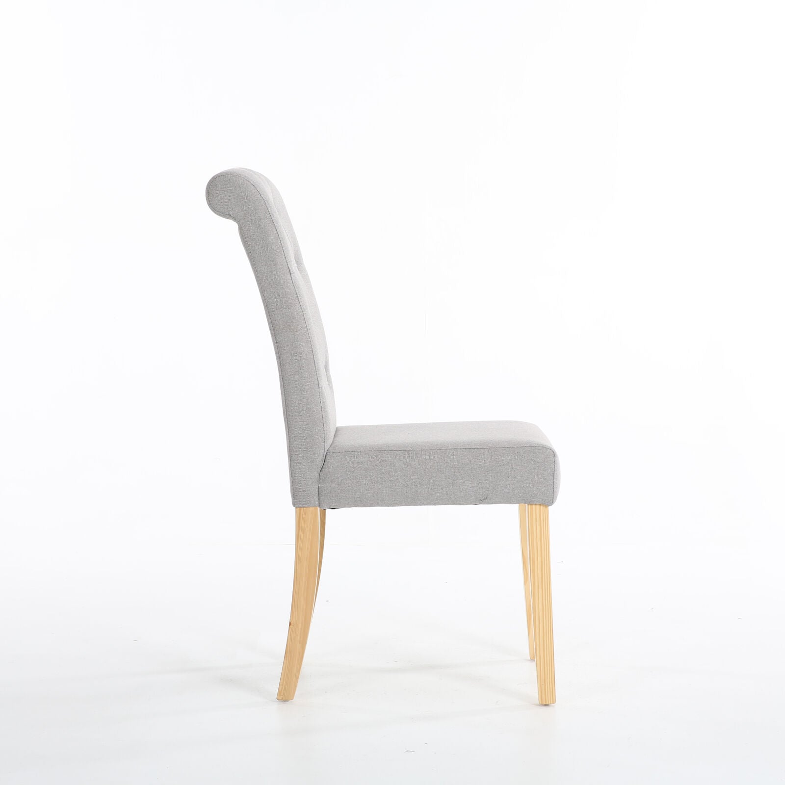 2 x DELUXE FABRIC DINING LIVING ROOM CHAIRS SCROLL HIGH BACK LIGHT GREY