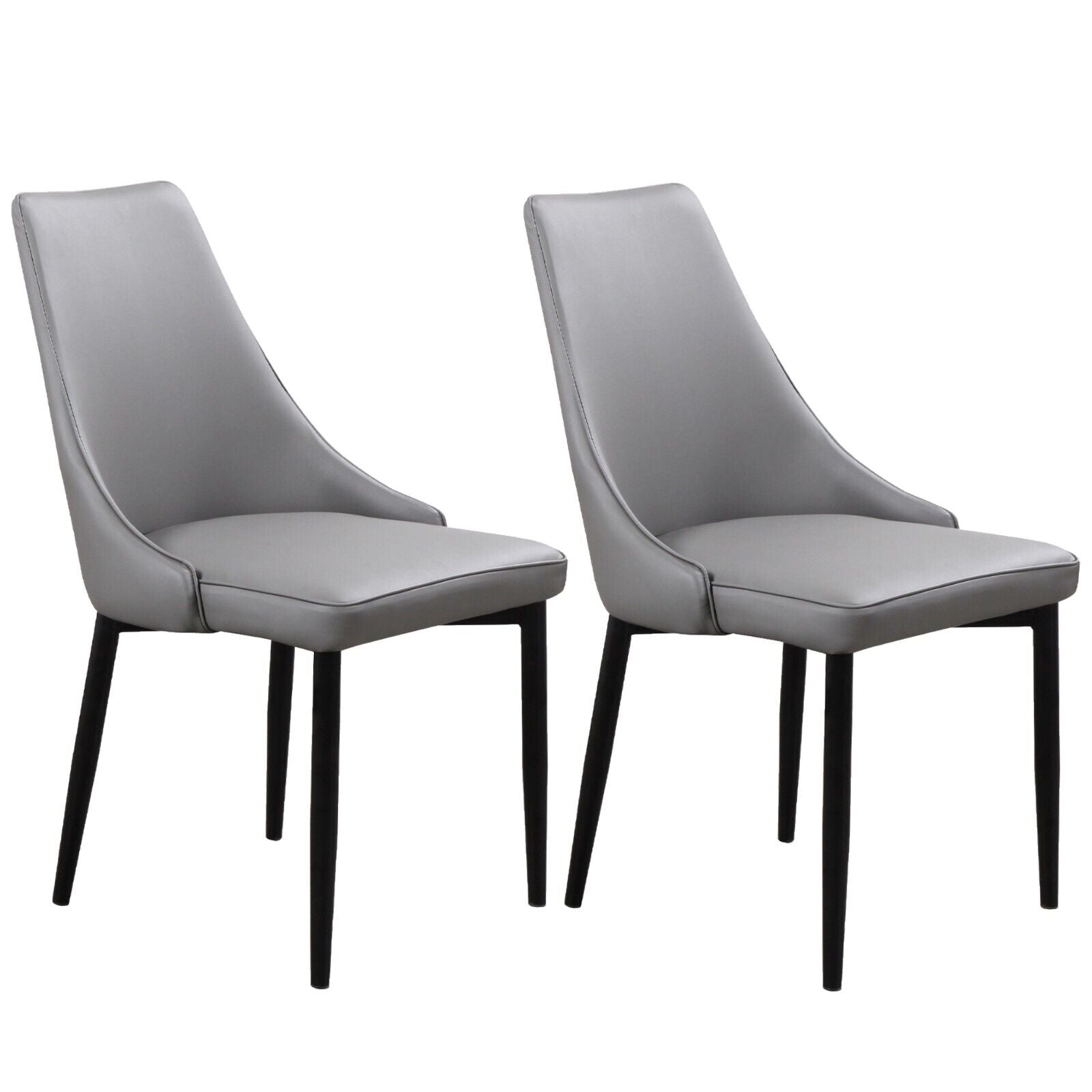 2 x Dining Chairs Grey Faux Leather Black Legs Dinner Table Kitchen Furniture