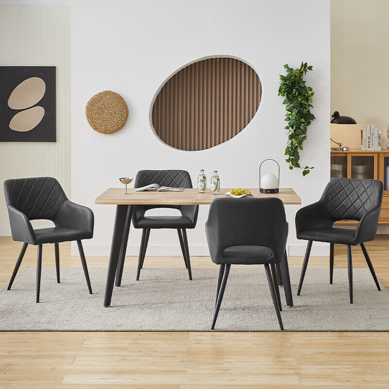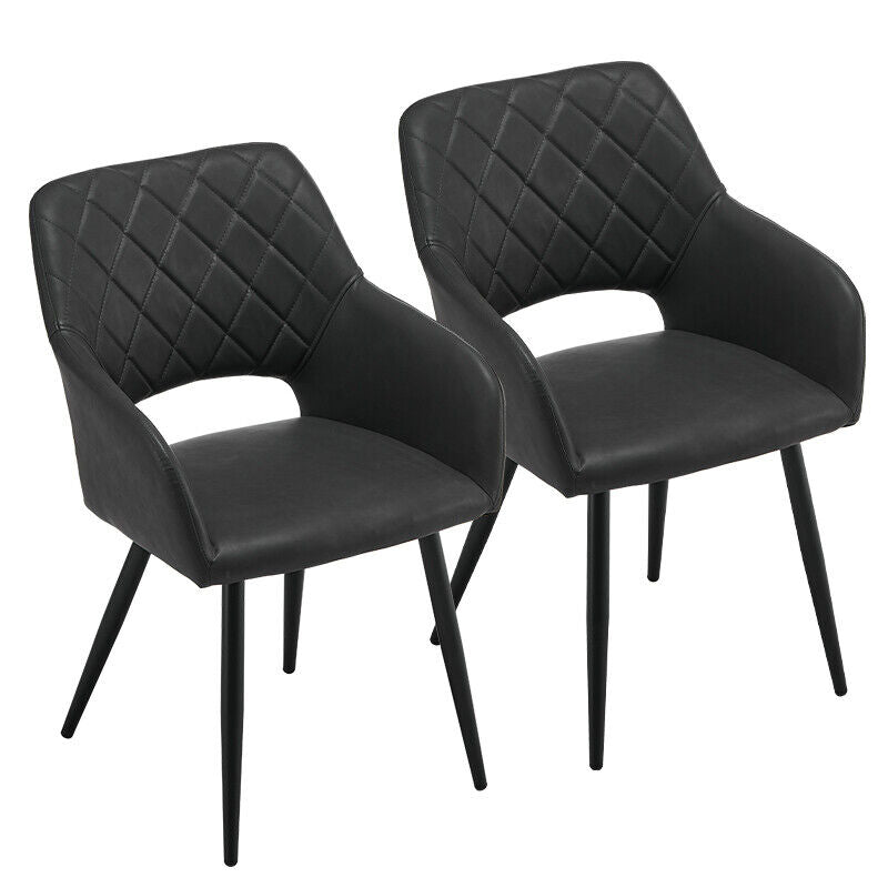 2 X Dining Chairs Grey Faux Leather Padded Cushion Diamond Chair Kitchen