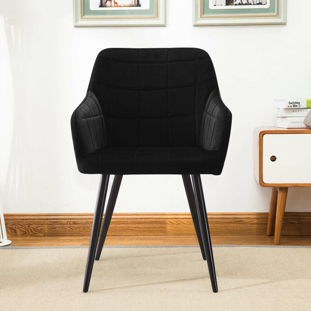 2 x Dining Chairs Set Velvet Padded Seat Metal Legs Kitchen Armchair Home Office