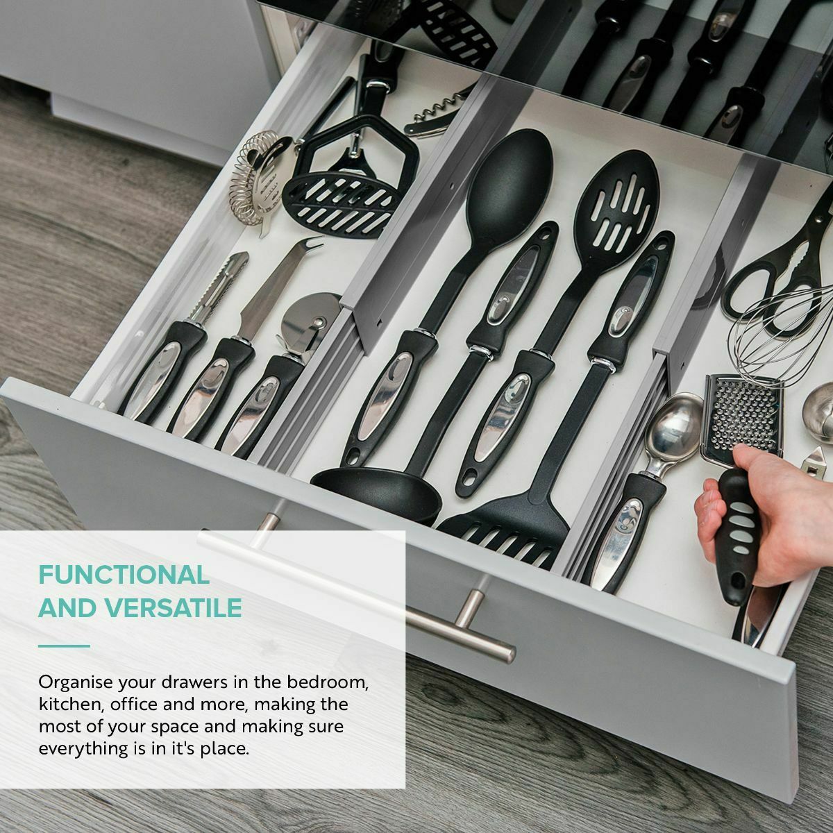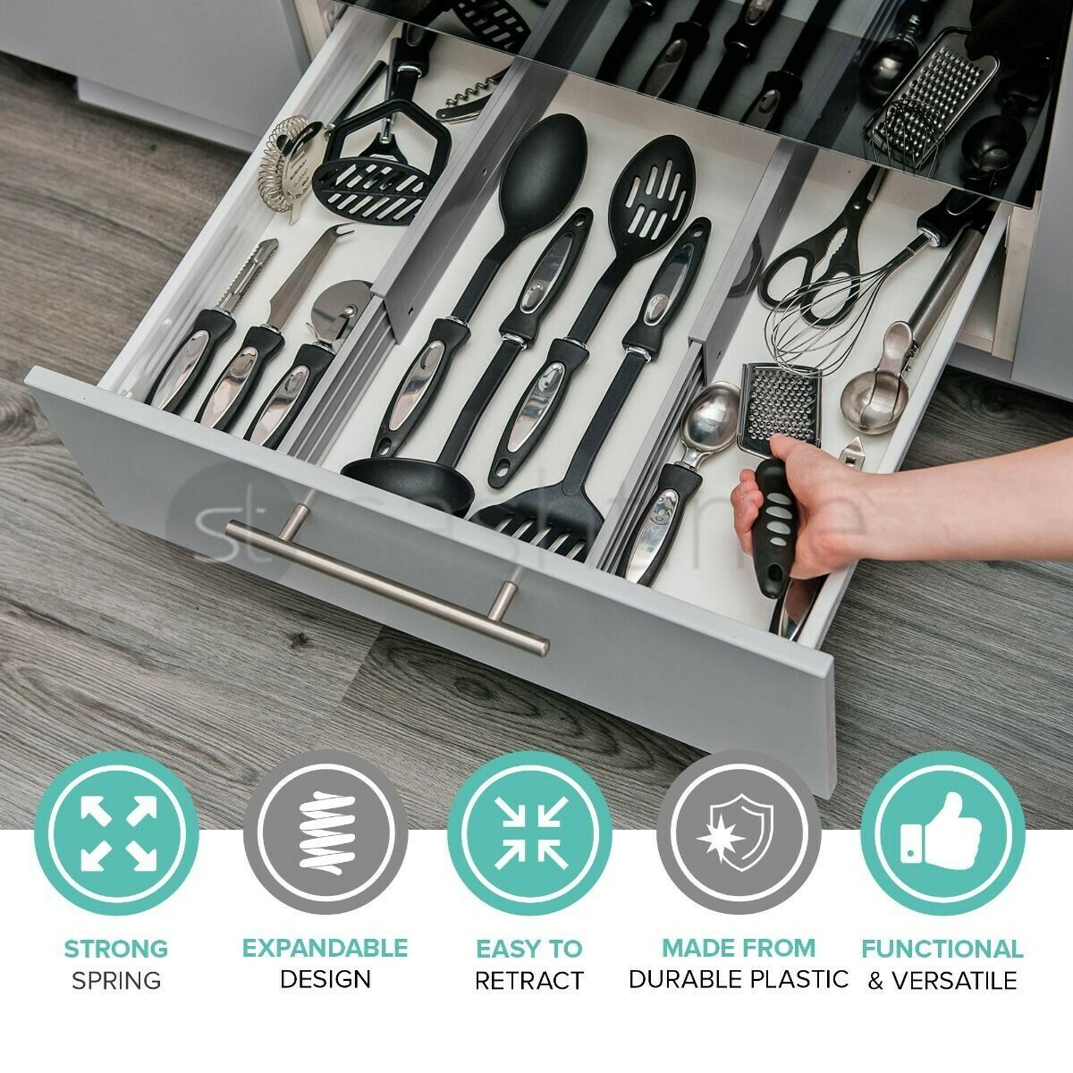 2 x Drawer Dividers Partition Spring Loaded Expandable Kitchen Bedroom Organiser