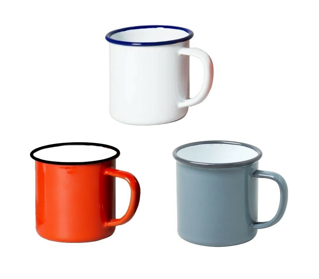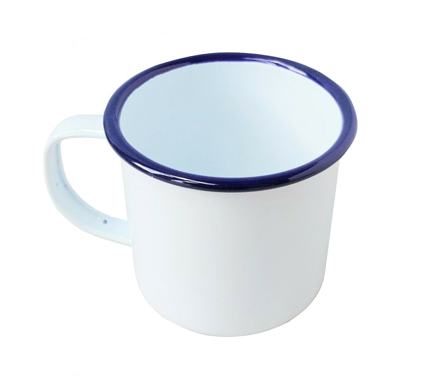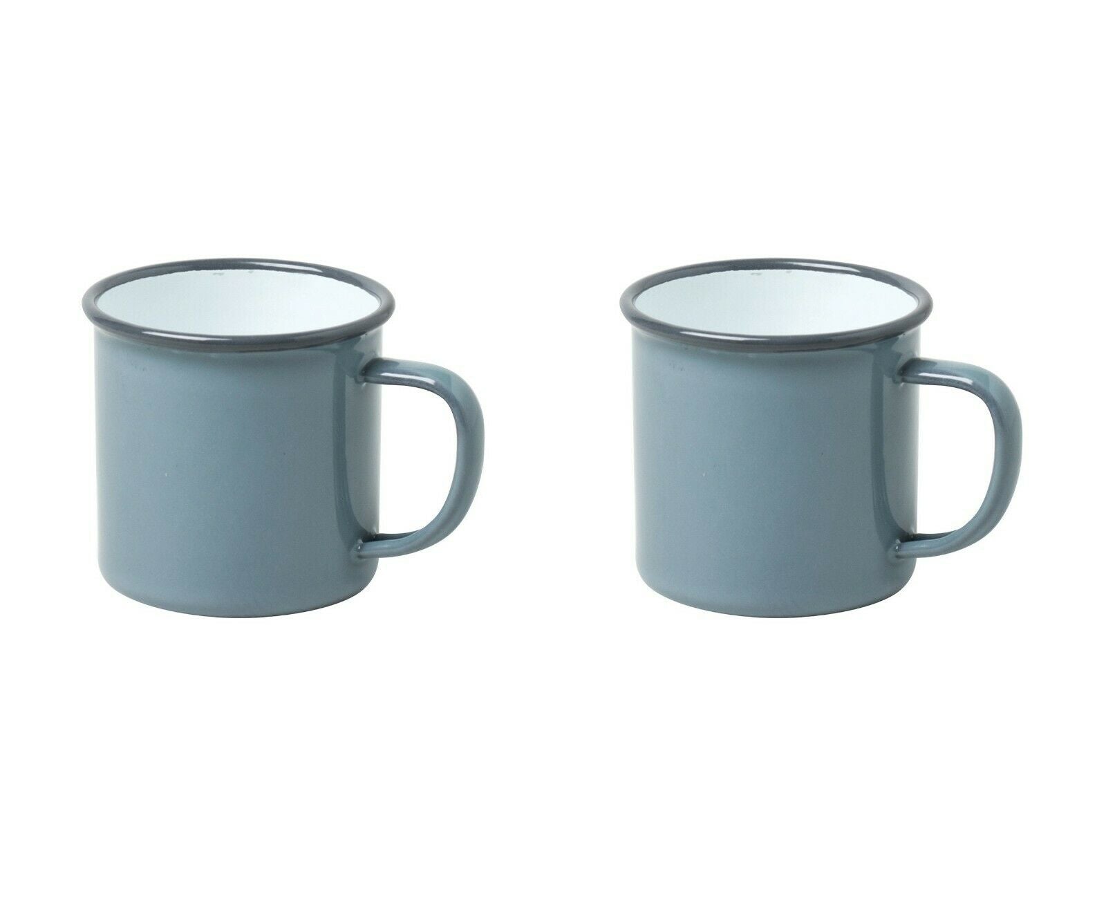 2 x Falcon Enamel Mugs Cups Tin Metal Camping Outdoor Tea Coffee White Red Grey
