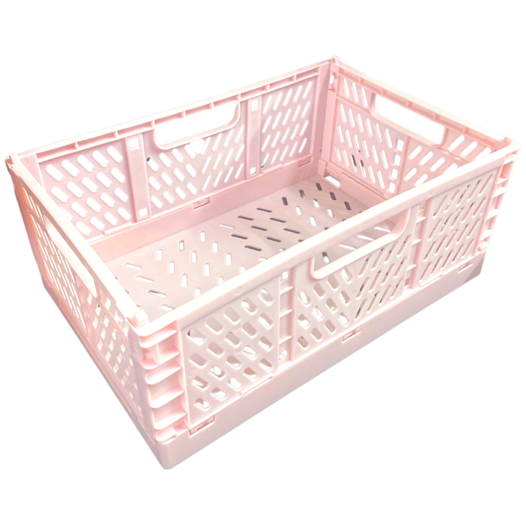 2 X Folding Collapsible Plastic Storage Crates Boxes Cosmetic Stackable Basket