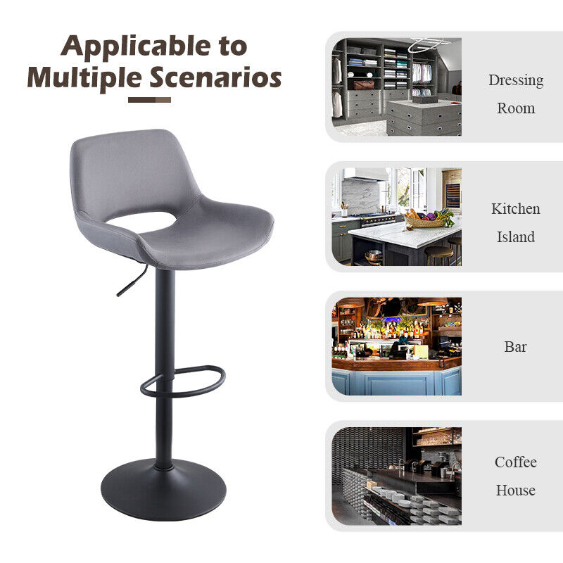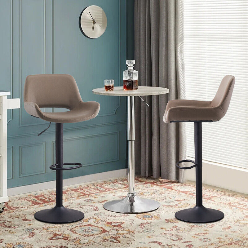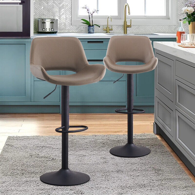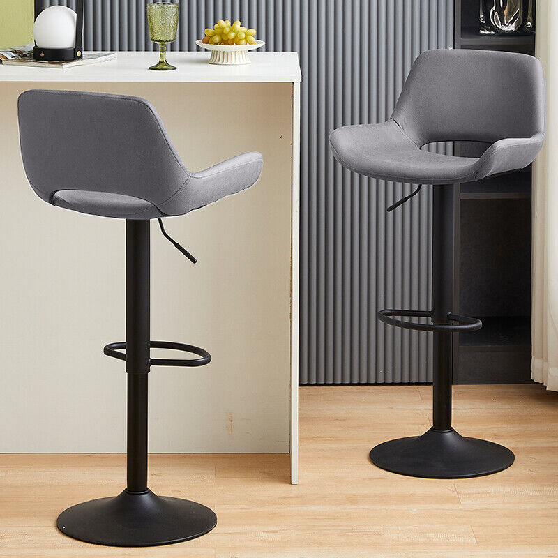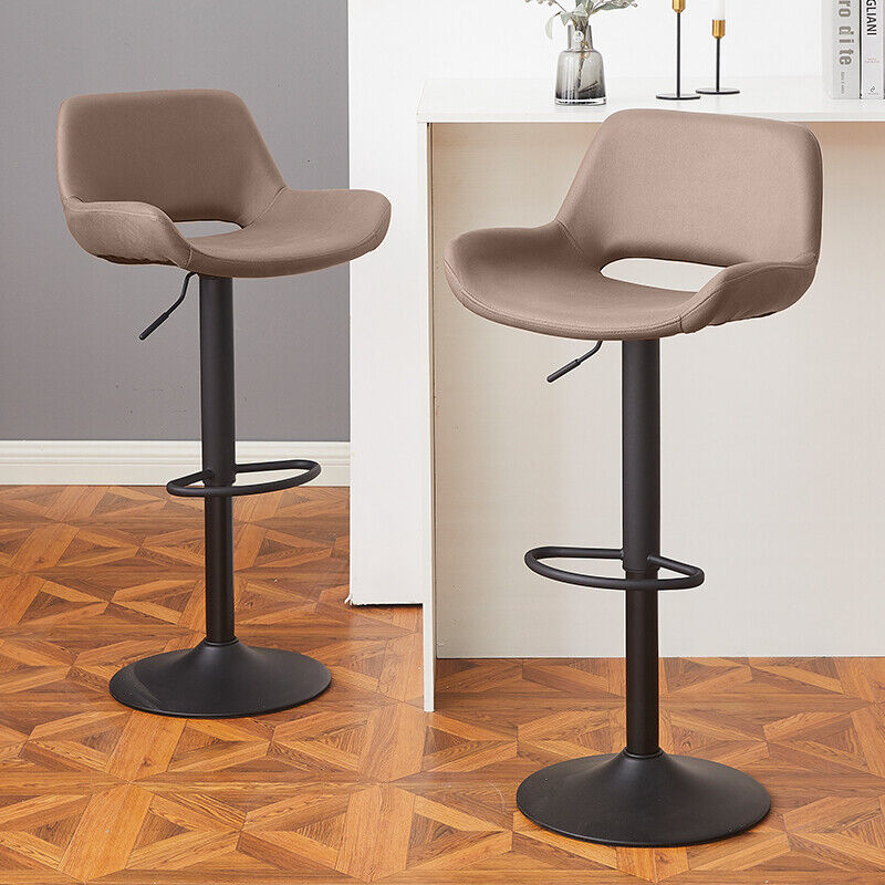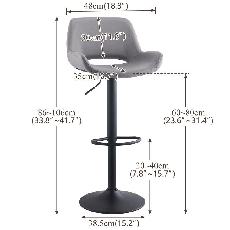 2 x Grey/Brown Bar Stools Swivel Padded Seats High Chairs Technology Cloth