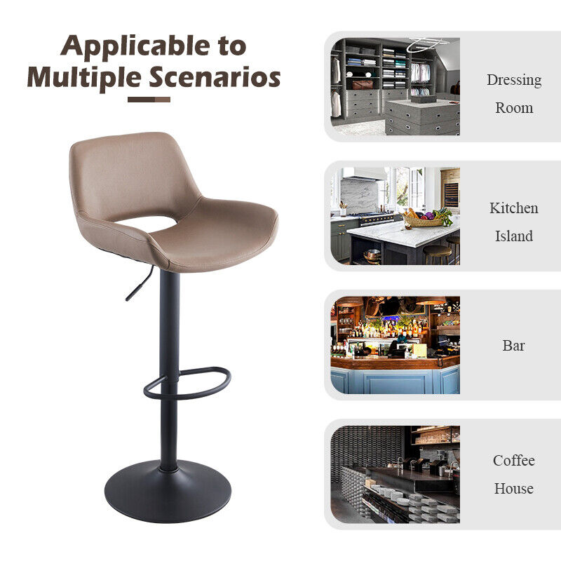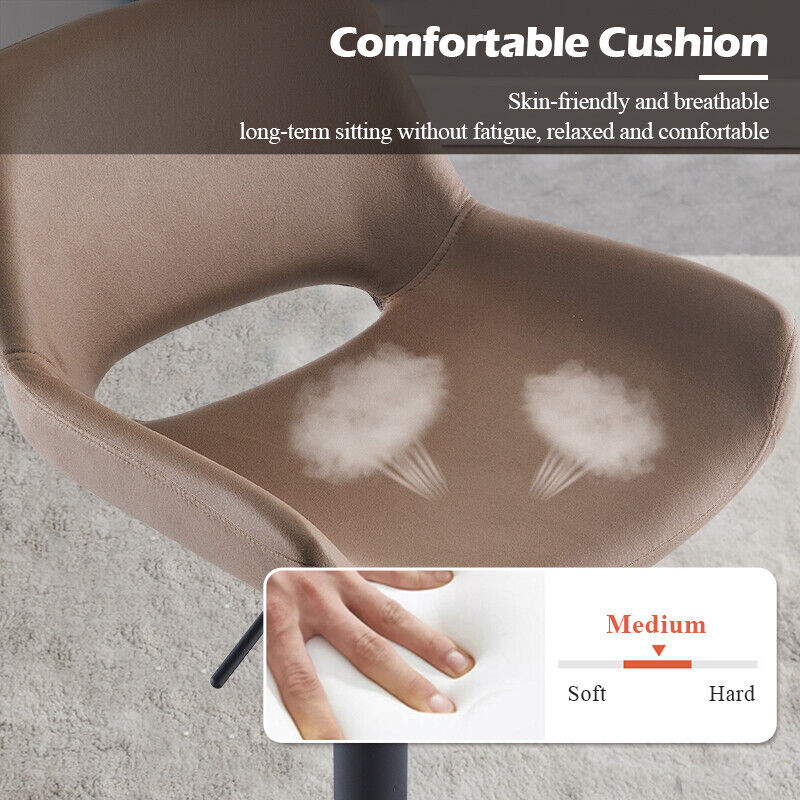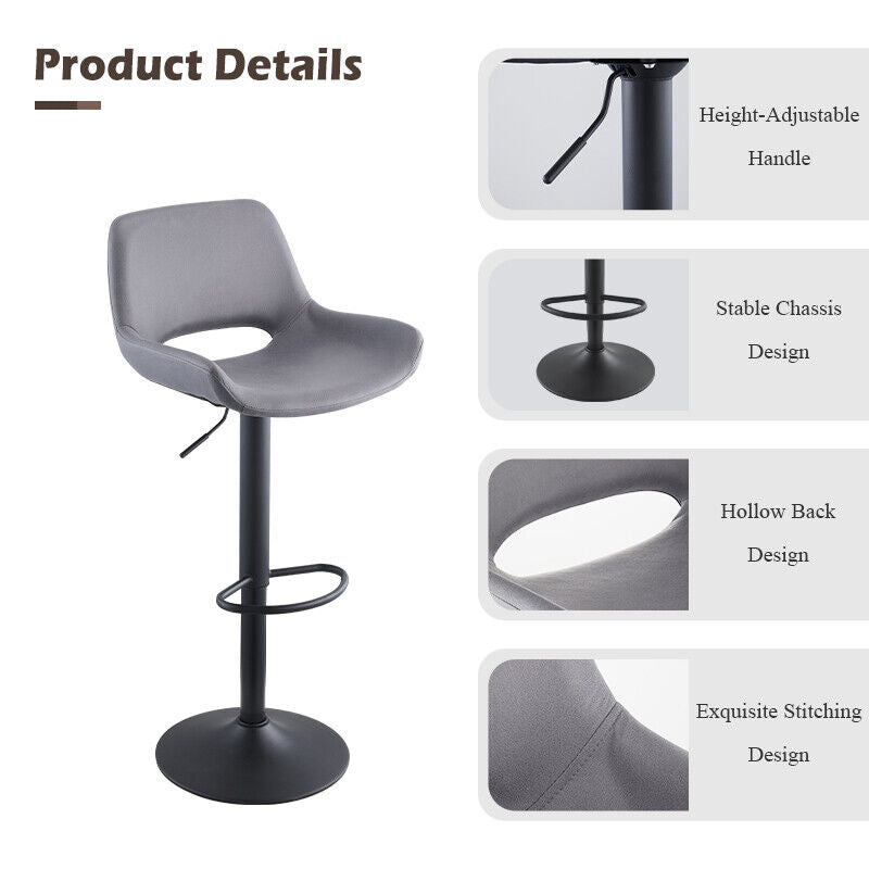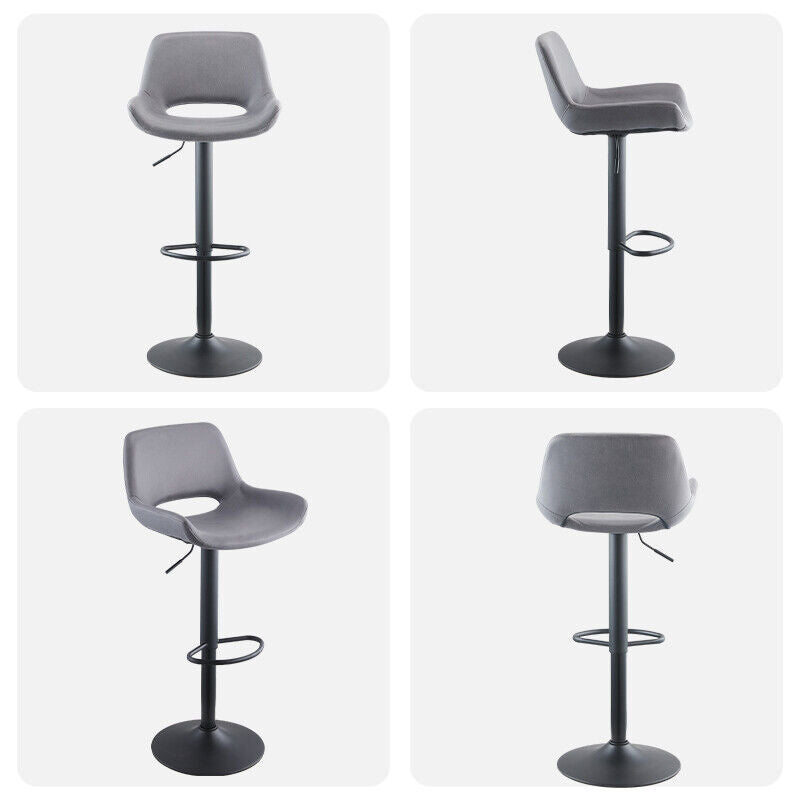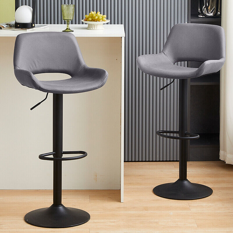 2 x Grey/Brown Bar Stools Swivel Padded Seats High Chairs Technology Cloth