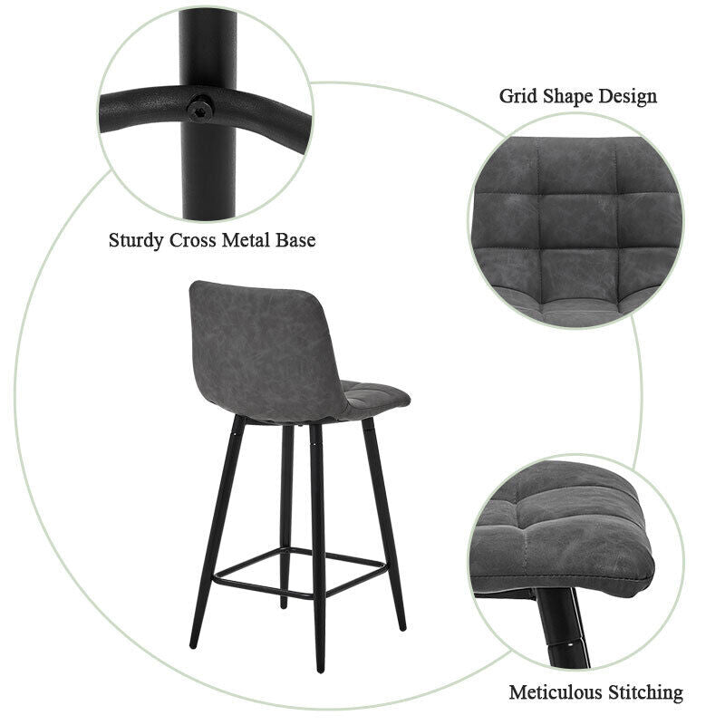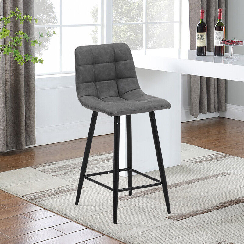2 x Grey Brown Faux Leather PU Sauqre Bar Stools Pub Chair Stool Padded Seats